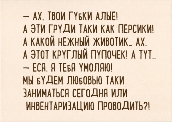 Гость Kis.(Кисточка) Опубликовано 31 мая, 2018 Опубликовано 31 мая, 2018 Вот такая она, любовь счетовода! Если счетовод говорит вам:"Дайте, я посчитаю!"- это значит только одно, баланс для него все. Ну, таки Фима, сколько можно пересчитывать мои изюминки?