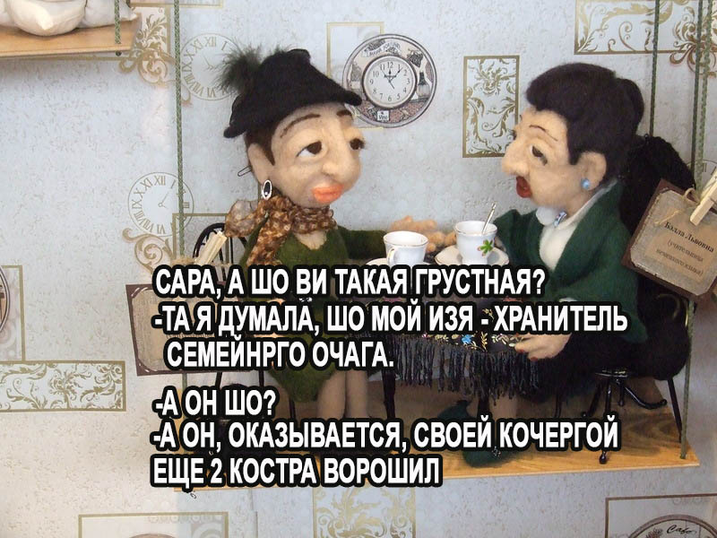 Гость Kis.(Кисточка) Опубликовано 4 июня, 2018 Опубликовано 4 июня, 2018 -Каких выдающихся провокаторов вы знаете? - Композитор Мендельсон. - Боже мой, но почему?! - Для миллионов дураков он написал нежный и завлекательный "Свадебный марш", а сам... А сам - всю жизнь спокойно прожил холостяком! ** - Циля, а шо это у нас сегодня на обед? - Картошка в депрессии. - Шооо? - Ну, пюре. Вроде картошка, как картошка, но такая подаааавленная... И хто виноват, Сара Моисеевна, если ви каждый раз являете миру их новые? И снова, таки придется Вас огорчить, я не кекс, мой внутренний мир гораздо разнообразнее. Ойц, Фима, вам этого не понять, таки да, хотя оно вам надо?
