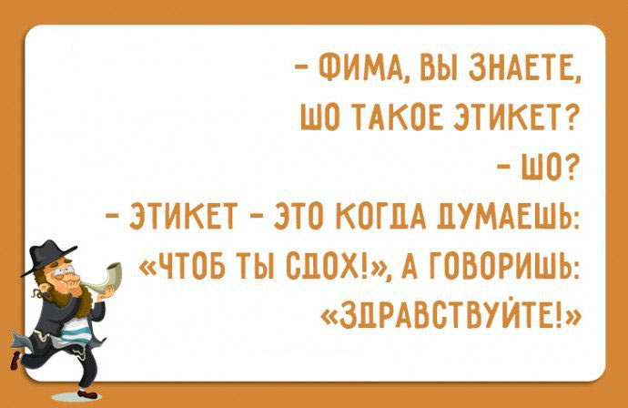 Гость Kis.(Кисточка) Опубликовано 9 июня, 2018 Опубликовано 9 июня, 2018 (изменено) - Шо вам сказать, Нюма, за нашу жизнь? Я уже не спрашиваю "где справедливость"? Я интересуюсь:где логика?! Изменено 9 июня, 2018 пользователем Kis.(Кисточка)