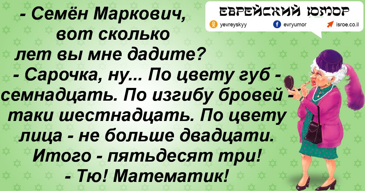 Гость Kis. (Кисточка) Опубликовано 21 февраля, 2019 Опубликовано 21 февраля, 2019 (изменено) Фима, вы таки немножечко не помните за тетю Машу, шо пока ви забывали она стала бабой Машей? Ойц,вей! Таки когда ви решитесь перекинуться со мной, может быть с еще большим удовольствием, плодово-ягодное стухнет, а сырок "Дружба" будет иметь бледный вид. Адрес тот же, шо указан в ваших записных анналах. Поспешите Фима, так хочется еще пожить и употребить плодово-ягодное в дело. Фима, как бы я с вами похулиганила, на такого как ви "сатиричного шлимазла" можно полностью положиться) Изменено 21 февраля, 2019 пользователем Kis. (Кисточка)