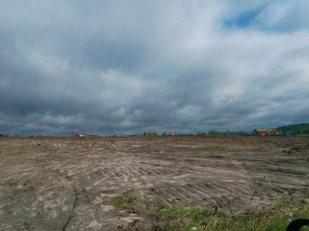 На околице, на месте будущего еврохимовского микрорайона движуха началась, работает техника...