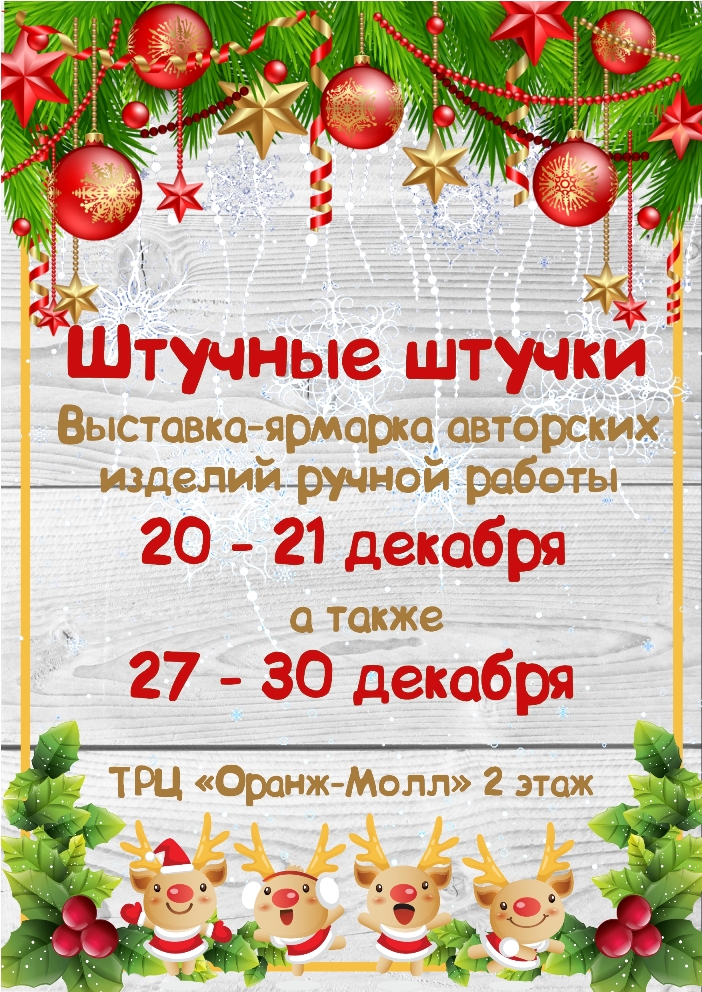 Avantyristka Опубликовано 7 декабря, 2014 Опубликовано 7 декабря, 2014 В декабре приглашаем всех за подарками на ярмарки 20 и 21 числа, а также 27-30 декабря! ТРЦ "Оранж-Молл", 2 этаж!