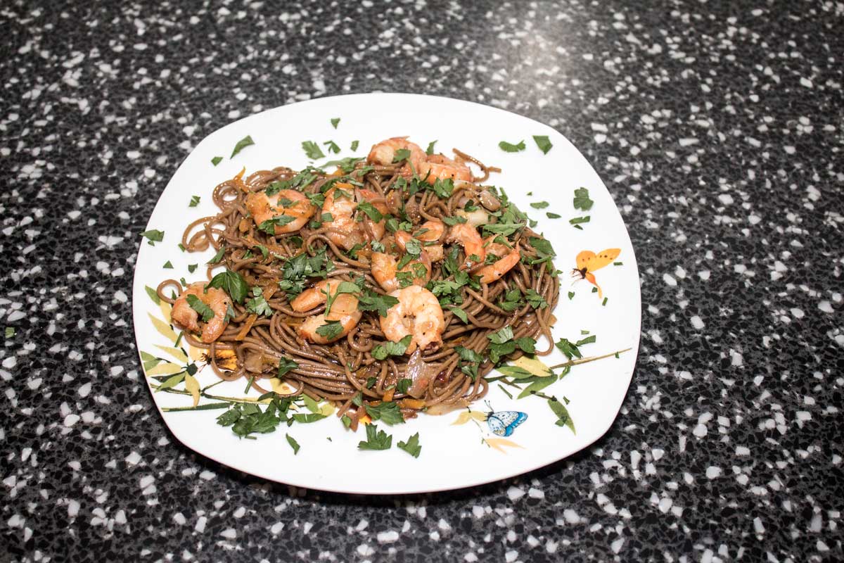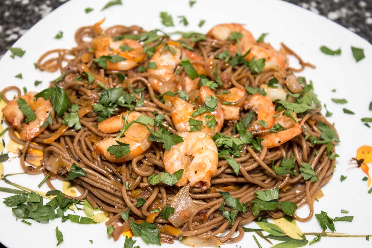Веcна Опубликовано 30 сентября, 2014 Опубликовано 30 сентября, 2014 А научите меня это блюдо готовить, плиз. А то я такую лапшу купила и чего с ней делать не знаю. с удовольствием научу) но два вопроса - как вы к острому относитесь и какой вариант рецепта дать? могу полный (он не сложный), а там уж определитесь что добавить, что убавить. могу упрощенный, как я делала напишу первоначальный рецепт. со своими комментариями...)) отвариваете креветки с несколькими дольками лимона и черным перцем. сварили, достаем, поливаем лимонным соком. остужаем. после остывания я чищу (можно не чищенные - на любителя) ставим на средний огонь сковородку. разогреваем оливковое или кунжутное масло (у меня оливковое). в разогретое масло мелко порезанные лук, морковь, кабачок, баклажан (в нынешнем варианте у меня без двух последних). в овощи добавляем по щепотке семян горчицы,кориандра, кунжута, немного черного молотого перца (в этот раз добавляла только перец). тушим минут 3-5. к овощам добавляем креветки. тушим еще пару минут. наслаждаемся ароматом...:) во время тушения овощей отвариваем собу. по времени ориентируйтесь сами. в зависимости от производителя 3-5 минут. не переварите! собу во время варки не солить! отваренную собу откидываем на дуршлаг и добавляем в сковороду. размешиваем. добавляем по вкусу соевый соус, постоянно помешивая тушим еще 3-5 минут (я в это время добавляю еще и острый тайский соус. но в первый раз лучше не надо. при желании в тарелку добавите - определитесь как вам больше нравится). выкладываем на блюдо, посыпаем петрушкой, можно еще приправить перцем. все! приятного аппетита...:) 2