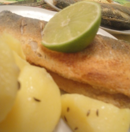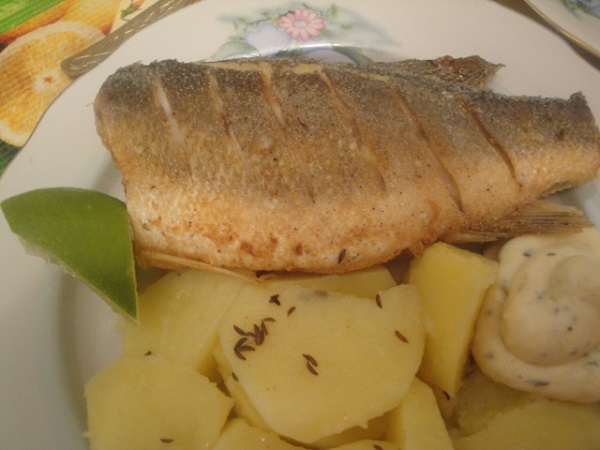 Ласка Опубликовано 22 декабря, 2014 Автор Опубликовано 22 декабря, 2014 А у нас очень поздний ужин был, уже сегодня... из приправ солировал тмин (я его не очень люблю, но тут он просто отлично!) до полуночи смотались в магазин, а там в рыбном отделе парнишка рыбу свежую партию только на лёд выкладывает, итог- привезли домой сибас, и ещё рыбку на НГ. Сибас, по причине нежности, сразу приговорили... к такой рыбе самый простой гарнир, немного соуса тар-тар, лайм. На всю готовку в 4 руки ушло 25 минут. 7