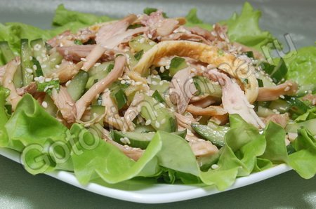 Vishеnka Опубликовано 6 апреля, 2015 Опубликовано 6 апреля, 2015 (изменено) в выходные готовила салаты.. сфоткать не успела но вот .. рецепты выложу.. кто захочет приготовит. делаются очень быстро) первый. помидоры с консервированной фасолью и куриной грудкой Помидоры 3 штуки Грудка куриная 500 г Сыр твердый 150 г Фасоль красная консервированная 1 банка Салат зеленый 1 пучок Сухарики по вкусу Майонез по вкусу 1. Помидоры, салат мелко нарезаем. Сыр трем на терке. 2. Куриную грудку разделываем на мелкие кусочки и тушим на слабом огне минут 20, пока вся жидкость не выкипит. Можно слегка обжарить. 3. Смешиваем все нарезанные и готовые ингредиенты, заправляем майонезом (сметаной). 4. Подаем салат, посыпав сверху сухариками. и второй Огурец , яичный блинчик, куриная грудка, салат куриное филе отварное - 200 г, огурцы свежие - 2 шт, семена кунжута, листья салата для яичного блинчика яйцо - 1 шт, соль, петрушка для заправки соевый соус - 2 столовых ложки, оливковое или растительное масло - 2 столовых ложки, уксус 6% - 1 чайная ложка, соль, сахар - 1/4 чайной ложки, чеснок - 2 зубчика, петрушка, свежемолотый перец 1.Курицу разобрать на волокна. Огурец вымыть, обсушить и нарезать тонкой соломкой. 2.Соединить курицу с огурцами, полить заправкой, перемешать и убрать в прохладное место на ~1 час. Выпечь яичный блинчик. Яйцо со щепоткой соли хорошо разболтать вилкой, добавить рубленую зелень петрушки и еще раз размешать. На смазанную маслом разогретую сковороду вылить тонким слоем взбитое яйцо и выпекать тонкий блинчик с двух сторон до золотистого цвета. 3.Готовый блинчик снять со сковороды, остудить и порезать тонкими длинными полосками. 4.Листья салата вымыть, обсушить и застелить ими дно тарелки или салатницы. Переложить настоявшийся салат на листья салата, украсить полосками яичного блинчика, зеленью петрушки и посыпать обжаренными кунжутными семечками. Для заправки: Петрушку вымыть, обсушить и мелко порубить. Чеснок очистить и пропустить через чесночный пресс. В миску налить оливковое или растительное масло, соевый соус, добавить уксус, соль, щепотку сахара, свежемолотый перец, чеснок и петрушку и хорошо перемешать. грудку на салаты купила одну и предварительно отварила. все очень быстро и вкусно) Изменено 6 апреля, 2015 пользователем Vishеnka 3