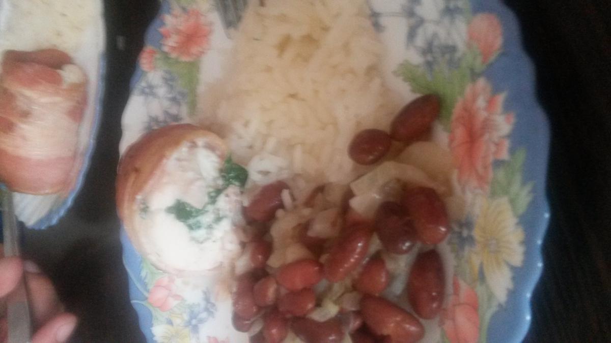 жужик Опубликовано 20 мая, 2015 Опубликовано 20 мая, 2015 Куриные рулеты с сыром зеленью в беконе. На гарнир рис и фасоль тушеная с луком 4