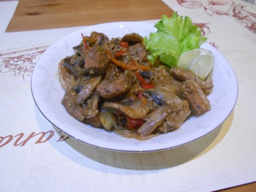 Vishеnka Опубликовано 13 августа, 2015 Опубликовано 13 августа, 2015 ну собственно вот, там свинина. гр 500, баклажан, луковичка, перец, морковка, и пару шампиньонов , все обжарить перед обжаркой фунчозу замочить на 30 минут в воде темп. 30-40 гр. затем добавить к блюду, у меня получилась рагу))) ну сейчас 20 минут подождем если с кухни будут звуки значит сьедобно. фунчоза я так понимаю эта та лапша что не имеет фкуса собственного и достаточно легко впитывает себя вкус основного блюда, у меня больше свиньи было в блюде получилось вроде ничо, я завтра протестирую) 4