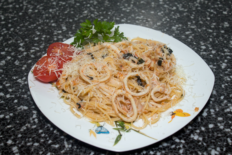 Веcна Опубликовано 26 сентября, 2015 Опубликовано 26 сентября, 2015 Ух, молодцы какие, сколько наготовили! :) У нас сегодня бюджетный ужин на скорую руку из того, что было дома :). Спагетти (усиленно юзаем скидки на барилла :) ) с кальмарами, томатами и базиликом (подгарнировкой там не базилик, петрушка - люблю молодую погрызть :), базилика достаточно в основном блюде) На десерт ягодки. планировался десерт молочный, но в процессе поедания спагетти, поняли, что не осилим. Потому просто виноград и черника :) 5