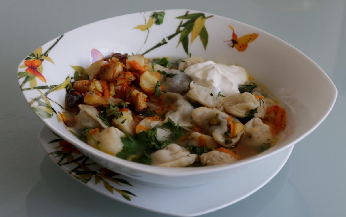 Веcна Опубликовано 16 апреля, 2016 Опубликовано 16 апреля, 2016 Со вчерашнего ужина остались отварные белые грибы и пара вареных картофелин. Ассорти из картофельных и грибных пельменей (замечательно сочетаются между собой). На овощном бульоне+зажарка белые грибы-овощи+сметана-зелень Вечером жареный рис с креветками. Кроме того, что сфотографировано на подготовительном этапе, еще присутствует яйцо и зелень. Острый перец в этот раз не добавляла. Сочетание чеснок-имбирь-мед-соевый соус само по себе оч вкусно :) Ну и брусничный морсик. Самое то по весне. 7