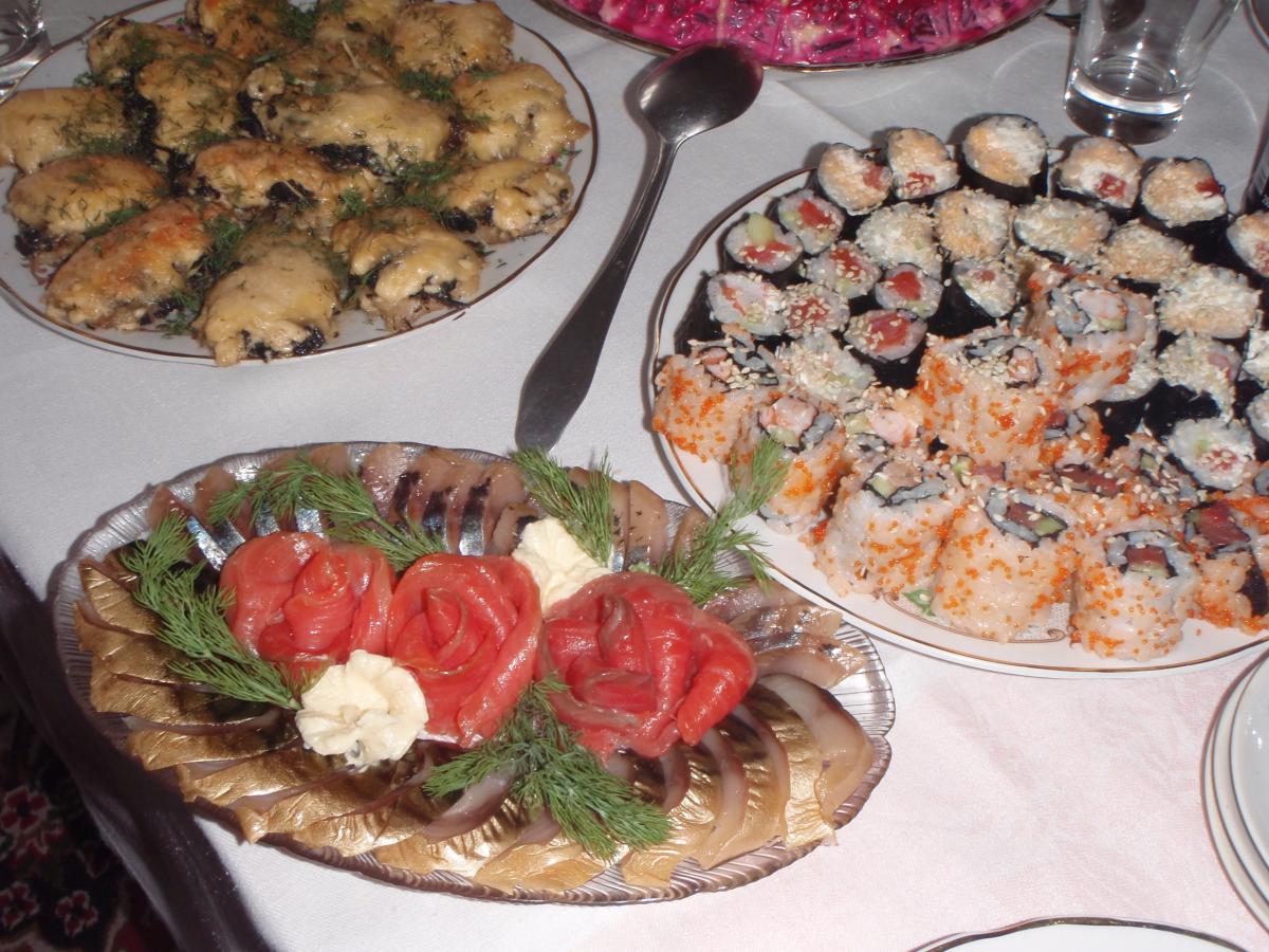 lugaika Опубликовано 10 мая, 2012 Опубликовано 10 мая, 2012 На втором рыба запеченная с грибами,а на третьем все просто профитроли с икрой!!! :cz: рыбка Рыбу разделать на чистое филе(любую),слегка отбить и порезать на порции(душа мера),.Все уложить на противень смазаный маслом . На рыбу уложить грибы обжареные с луком. Сверху майонез и сыр. В духовку минут на 20 при 180градусах. Я частенько так делаю. По этому же принципу делаю курицу. 4