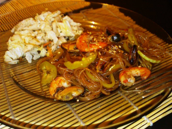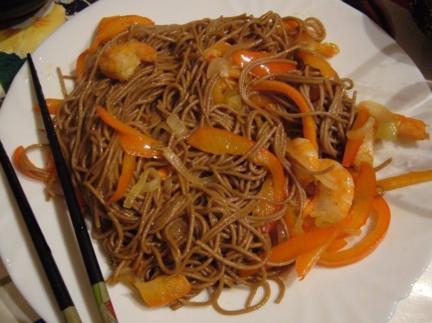 art21 Опубликовано 15 июля, 2012 Опубликовано 15 июля, 2012 Рецептики,рецептики плиззз! А то видит око,да разобрать,что там такое вкуснющее на тарелке,не может! Все очень просто! (главное продукты что бы были эти постоянно в доме). Вот ссылка вам (отправлю в личку), только я шитаки не беру (не по вкусу они мне), вместо них делаю креветки или мидии (можно вместе как и у меня на фото). Лапша продается практические везде (так и называется она "фунчоза" или по китайски будит написано что то, фото вложил)) И я лапшу не завариваю , а варю две минуты в кипящей воде. А кунжут я ложу уже об жареный в готовое блюдо при сервировке. P.S. Приятного аппетита! 2
