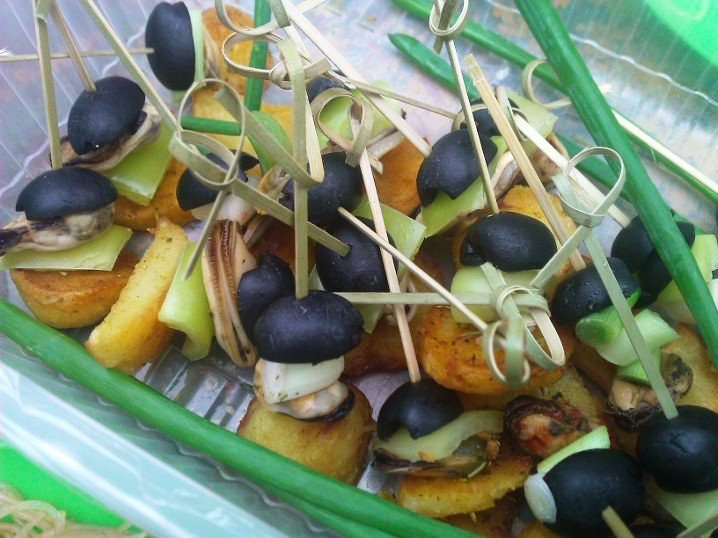 lugaika Опубликовано 16 июля, 2012 Опубликовано 16 июля, 2012 Все как всегда очень просто!=) Мясо (свинина) обжарил (мелко нарезать) с шампиньонами на олив. масле (первые грибы, позже мин. через 3-4 мясо, и глазируем все коньякам) добавить немного травы (розмарин, тимьян) а когда дойдет до готовности мясо (это мин. 4) добавляем фасоль уже в готовое блюдо (минут через 3, там видно будит по цвету) добавляем лук свежий (4-5 см., только зелень, а остальное остается для канапе) Канапе- вареный картофель (который был сварен для окрошки (да кстати в этот день была и окрошка))) обжариваем до зол. корки. и начинаем- маслина (половинка) лук или перец, мидия, и затем долька картофеля (Лично я предпочитаю использовать шпажки, изготовленные из дерева. Во-первых, потому что это «натуральный продукт». Во-вторых, потому что нанизанные на них овощи и фрукты не соскальзывают так ретиво, как, к примеру, с пластмассовых шпажек) . Ну и "фунчеза" салат, то есть закуска! P.S. Приятно аппетита. (это не так сложно как я тут описал все, хотя для кого как!) Конечно я вас понимаю, но... но Русская кухня это быт! Быт присущий в каждой семье. Конечно я не когда не откажусь от селедки в уксусе и луком репчатым (со своей грядки, правда сада у меня нет) и картофелем (...привезенным из другой страны благодаря Петру 1 в начале XVIII века) как называют у нас его вторым "хлебом". Да и многие русские блюда не имеют аналогов в зарубежных кухнях: квашенная капуста, соленые огурчики, сухие белые грибы. Но все таки хочется немного разнообразия )))))) Вот и приходиться что новое искать!!!!!!)))) Я не против разнообразия но не каждый день А вообще хочу научится готовить кавказскую кухню Она мне больше нравится )))) 1
