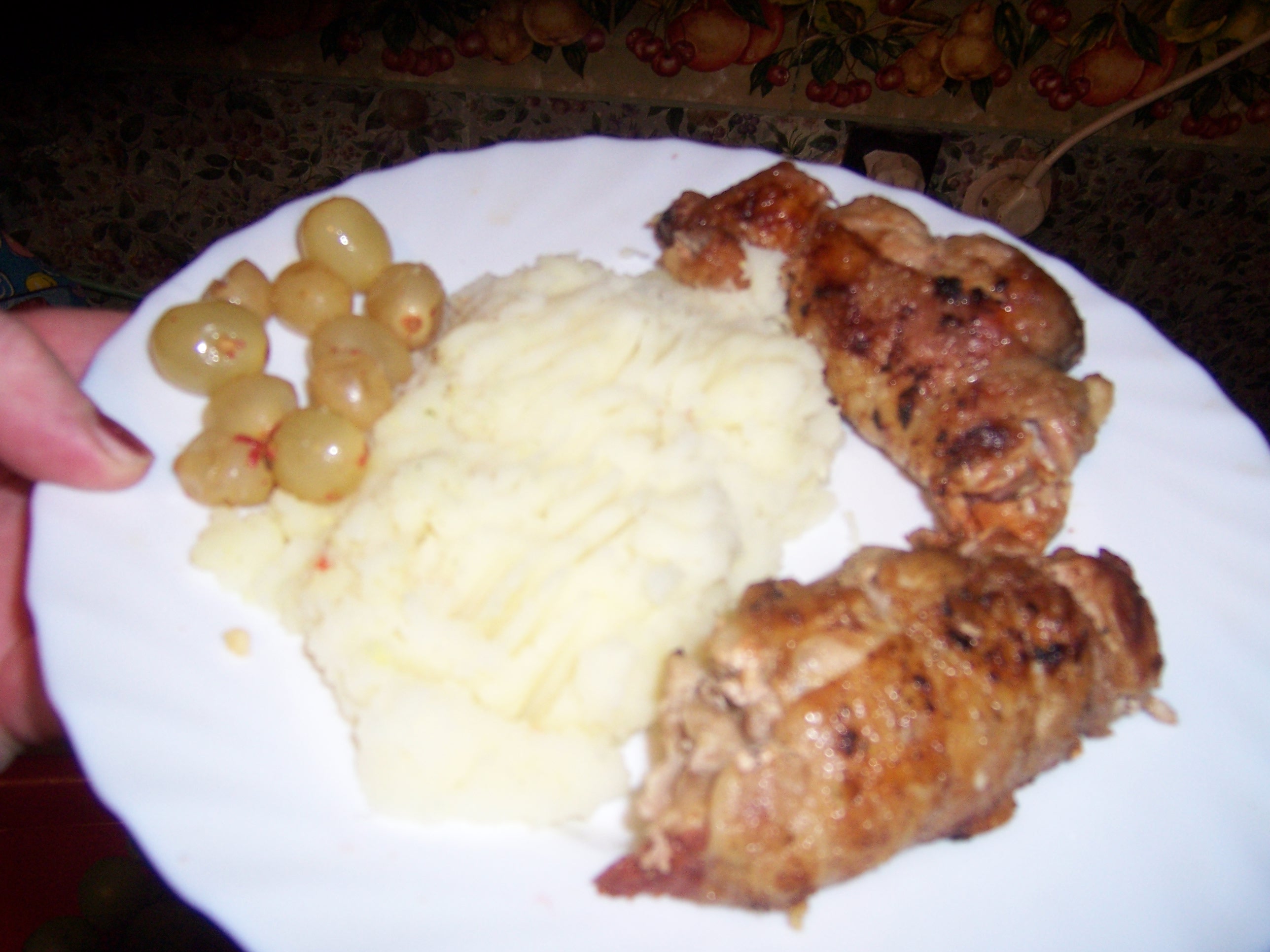 М Ƹ̴Ӂ̴Ʒ МАГДАЛЕНА Опубликовано 3 декабря, 2011 Опубликовано 3 декабря, 2011 у нас на ужин рулетики из куриных бедрышек с яблоком.сыром ветчиной. на гарнир пюрешка и маринованный виноград из запасов. :be: 2