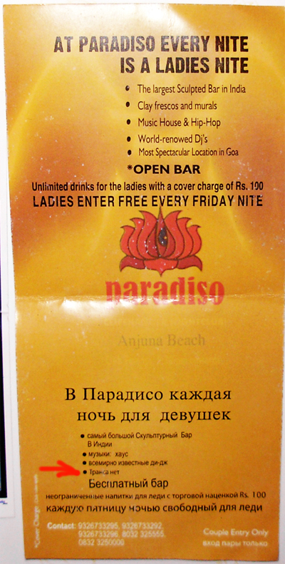 Irashi Опубликовано 14 октября, 2009 Опубликовано 14 октября, 2009 Как обычно, это место испортили толпы туристов. Но все-таки энергетика на побережье индийского океана какая-то другая. Прет нереально, спишь по нескольку часов и энергии хватает. Может из-за того, что Гоа на текто разломе находится и под ногами остывшие вулканы с выплеснувшейся в море лавой. Сознание как-то изменяется, вообще от внешнего мира отключаешься. Я не помнил какой сегодня день, сколько времени, не знал главных мировых новостей и курсов валют. Про интернет - просто забыл)) Короче - полный отрыв от реальности )). Закаты потрясные. Ночной Бага-бич со столиками у океанской воды, свечками и кальянами - как в сказке )) За две недели мне этот Гоа как родной стал, так что по поводу отсутствия транс-музыки... мне как-то пофигу, там и без этого зае...сь )) К тому же 100 километров пляжей -- реально найти места, где практически никого нет. Если кто собирается ехать - езжайте, не пожалеете. С одной стороны там конечно та еще помойка, но с другой -- нереально можно оторваться )) Я был с середины до конца января, транс-эвентов нифига не было. В бар, который до 22 работает (после него обычно в Парадисо едут) так и не заехали, потому не знаю что там крутят. Парадисо -- самый убойный клуб на Гоа. Он встроен в скалу и площадкой выходит прямо в океан. В этот раз половина территории клуба была закрыта, спрашивали почему -- говорят кризис и туристов мало. Кстати, у меня завалялся флаер из Парадисо ))