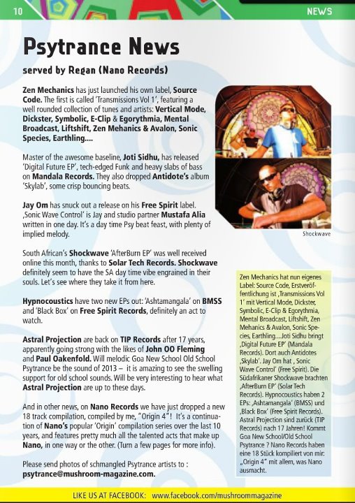 Gh0stD0G Опубликовано 19 июля, 2012 Автор Опубликовано 19 июля, 2012 "Mushroom Magazine" [July 2012] : "Astral Projection are back on TIP Records after 17 years,...