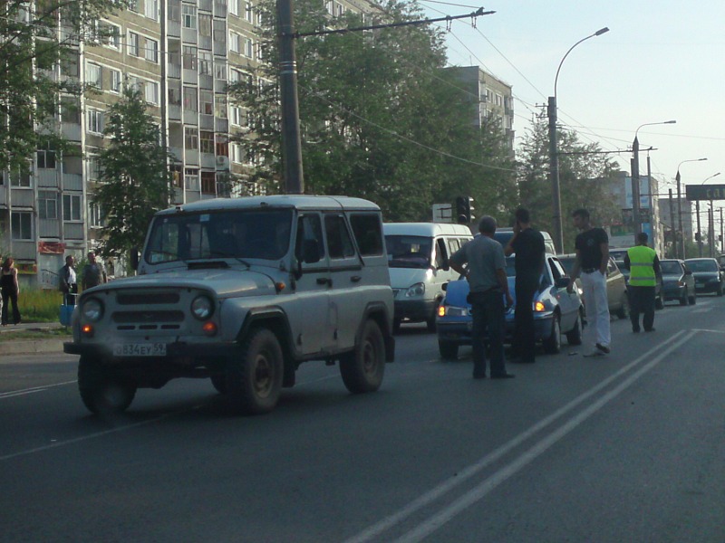 qaz Опубликовано 19 августа, 2009 Опубликовано 19 августа, 2009 Мира-Юбилейка. Девятка и похоже УАЗик.Стоят в разных местах. Видимых повреждений не видно. у девятки разбита левая фара за рулем женщина