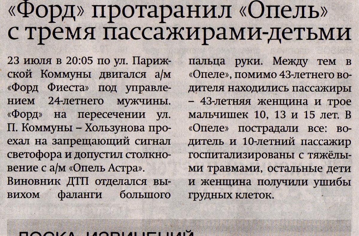 Assarg1990 Опубликовано 25 июля, 2016 Опубликовано 25 июля, 2016 аналогии просматриваются в реакции общественности. З.Ы. Ну ещё тогда версия. Опель выезжал от пивзавода, надеясь на красный для ПК, не уступил синей Фиесте. Да Фиеста синяя, да на красный, но их взаимотношения в этой ситуации строятся на знаках приоритета, а не на сигналах светофора. вряд ли от пивзавода, там с семьей делать нечего, скорее всего информация про красный сигнал ошибочна