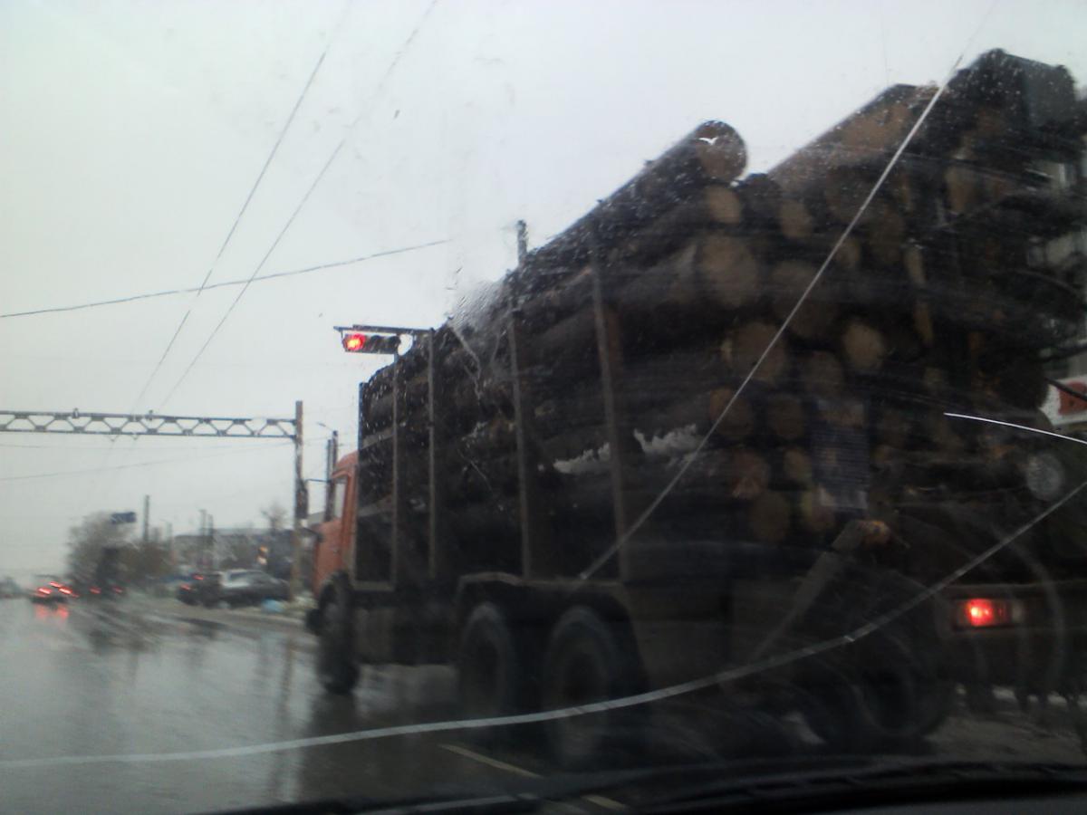 Фуры, лесовозы через город идут. Сейчас у МЖК чуть фура мне в зад не въехала, когда я на переходе встал, пропуская пешиков. Летела, как припадошная, тормозила с юзом.
