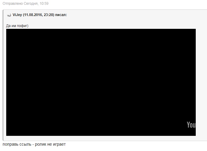 Delerium Опубликовано 12 августа, 2016 Опубликовано 12 августа, 2016 у меня не хром, при нажатии "посмотреть на ютубе" открывается просто стартовая страница ютуба, поэтому и подумал что линк кривой, от флэша все уходят, кроме, похоже, берфорума )))