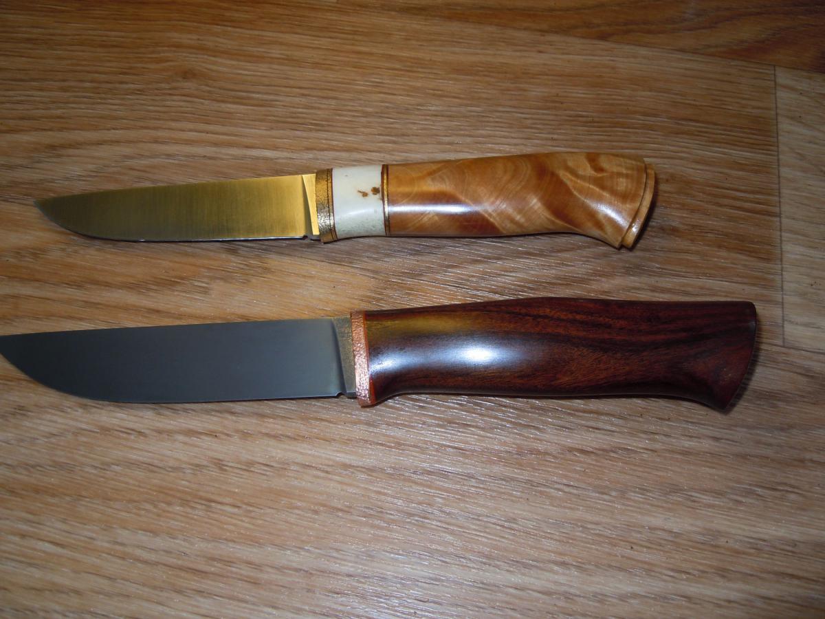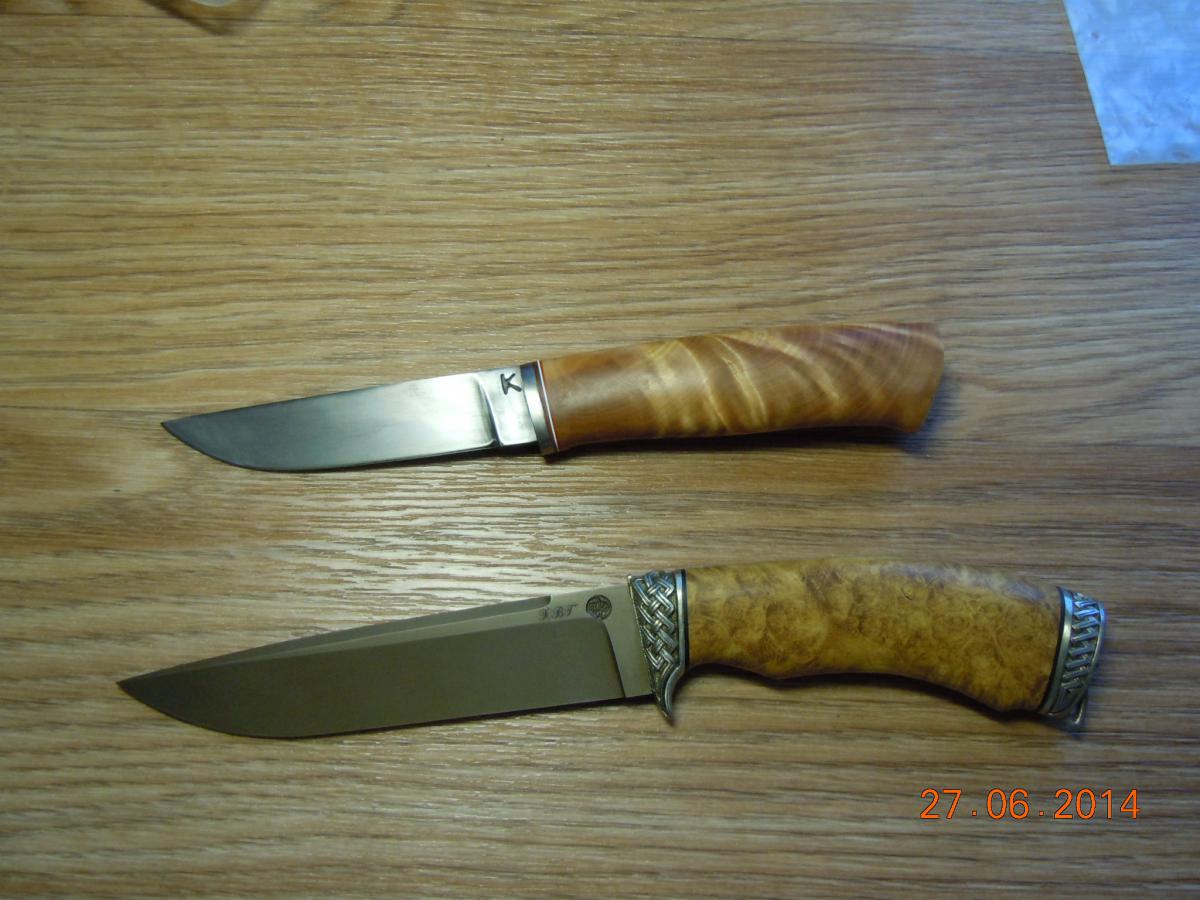 val58 Опубликовано 6 октября, 2014 Опубликовано 6 октября, 2014 светленький-сталь Hromalit 40-латунь.-рог лося-березовая сувель. темненький-сталь PSF-27-медь-бразильский палисандр. их судьбу сфотографирую позже.