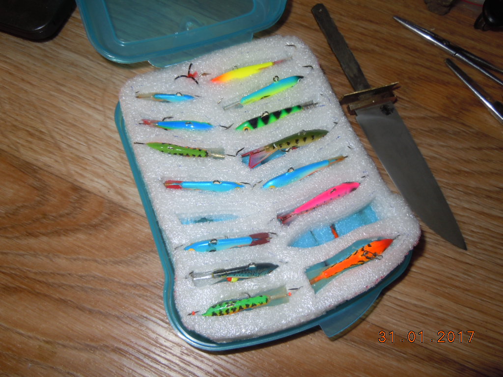 val58 Опубликовано 31 января, 2017 Опубликовано 31 января, 2017 Всем привет.Давно не самоделил. В общем столкнулся я с проблемкой. Поездки на Иньву, долгая и тряская дорога приводят к тому что мои балансиры стали терять товарный вид,да и в ящике переплетаются ,на морозе морока распутывать. Заводские коробки-неудобны,дороги и они все равно уродуют балансиры.Свояк(спасибо ему) подогнал мне коробку из аптеки высотой 40мм-габаритами 130*150мм. Я вырезал из упаковочного вспененного полиэтилена(можно пенопласт или полипропилен) высотой 20мм 2 пластины, размерами входящих в эту коробку свободно.Задними сторонами пастины примыкают.В этих пластинах я вырезал нишки-могилки для балансиров.Коробку можно переворачивать и обеспечивать 2х сторонний доступ к пластинам.На фото все понятно.Вот получилась такая общага на 31кроватку. Конешно не самоделка ,а колхоз-проект,но испытания показали все в целости и сохранности и доступ удобен. Всем здоровья.