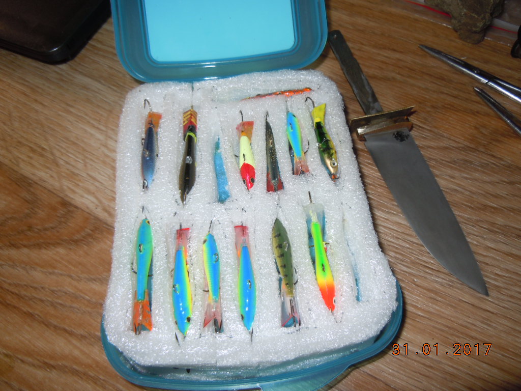 Дядя Серёжа( Геннадич) Опубликовано 1 января, 2017 Опубликовано 1 января, 2017 Вот вечер провёл за изготовлением , конечно не копия , У меня вопрос ; если кто-то уже пробовал такую или подобное - будет-ли захлёст? Всех с наступившим, 2017-ым!Твистерочки на офсетниках - я такие же делаю. Только этот цвет хвоста, что у нижней приманки, я не применяю. Сколько ни пробовал ранее - безрезультатно, у меня работают жёлтый, белый, оранжевый, чёрный даже. А чтобы не было захлёстов, перед приводнением приманки немного придерживаю леску на бортике шпули, тогда она разворачивается и ложится на воду не вперёд грузом, а вытянувшись как бы в линию. Я все приманки так забрасываю и блёсны, в том числе. Она мне, кстати, немного мандулу напоминает. И ещё, я бы порекомендовал тройник поставить не на каркас блесны, а на заводное кольцо, к которому вертлюг прицеплен, чтобы он (тройник) от общей оси приманки меньше отклонялся. Ну, а летом рыба покажет, имеет ли место этой приманке быть в Вашем арсенале!