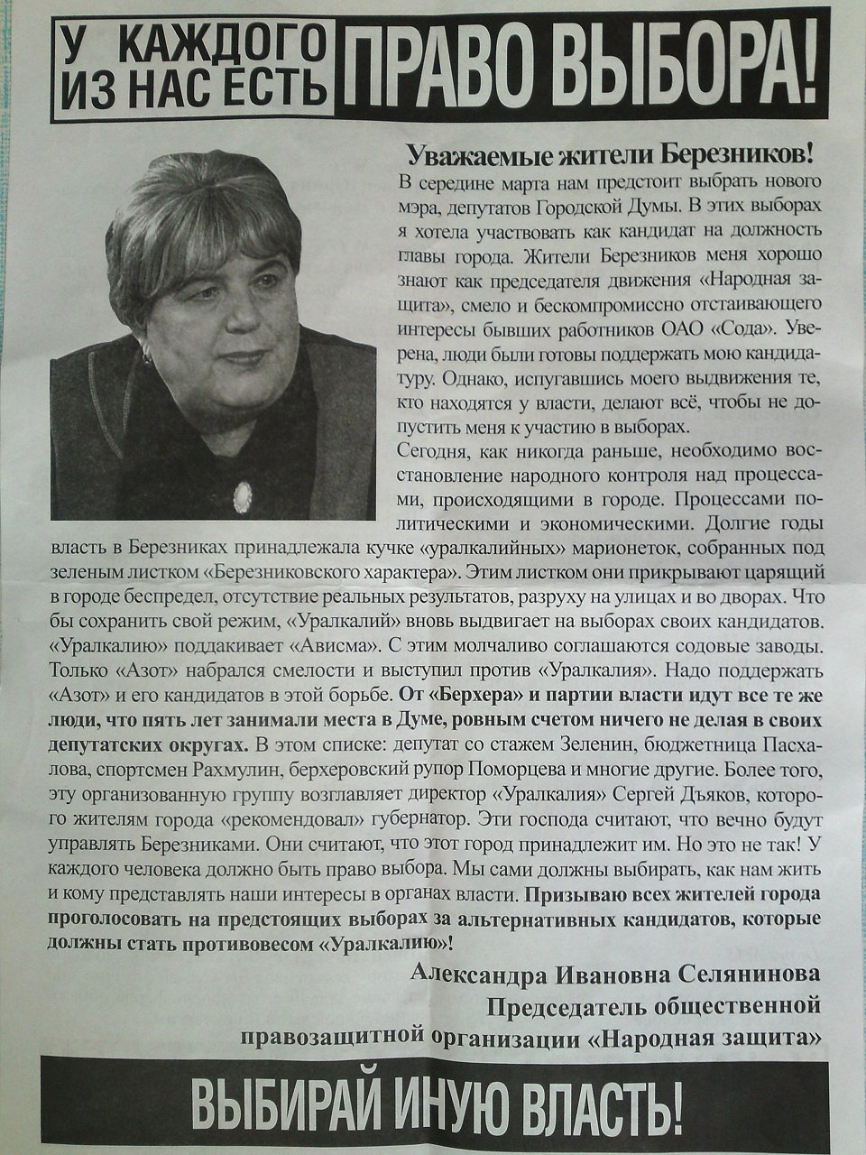 Велика тайна... в городе-то Березники. Даже я краем уха уже слышал, хотя специально (т.е. намеренно, сознательно) не интересуюсь. Кузнецов и Сельков. Только имена они называть не хотят потому, что решение ИКов можно опротестовать. Но это уже от уралхимов зависит, будут биться или продолжат сопли жевать.