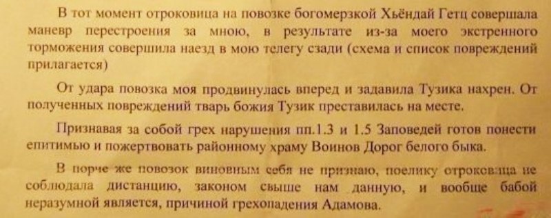 Makcим Опубликовано 3 июля, 2012 Опубликовано 3 июля, 2012 Cтаруха выскакивает. Водитель объезжает ее, кроя трехэтажным матом, а священник ему говорит: - Грешишь, сын мой. А ведь в молитве сила. Едут они дальше. Тут выскакивают на дорогу детишки. Таксист опять - Еб твою …. священник ему опять: - Грешишь сын мой, нельзя же так. Сила в молитве. и едут дальше. Тут машина одним колесом влетает в яму. Колесо отрывается, и машина со страшным скрежетом продолжает свое движение. Тут водила начинает молится. Неожиданно колесо катится назад, а потом еще и прикручивается на место. Тут святой отец: - Ну ни х*я себе! 4