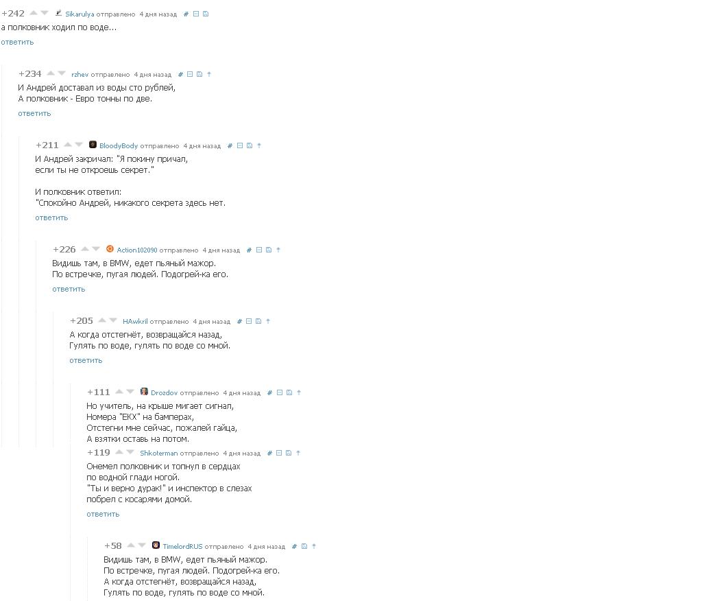 Популярный пост uran Опубликовано 16 апреля, 2014 Популярный пост Опубликовано 16 апреля, 2014 Еду в машине с приятелем. Он за рулём, рядом его супруга. У них общий бизнес-сеть магазинов интим товаров. Приятель-оперирующий хирург-травматолог. Работает за небольшие деньги (а по меркам их доходов - за супер мизер).Но он спасает людей, не может по - другому, видимо, советское воспитание (Светя другим - сгораю сам!). Большой, добрый, флегматичный доктор и оригинальный человек, таких сейчас мало... Но я не об этом (пардон, отвлёкся!). И вот...Какой-то "шумахер" дерзко подрезает его при обгоне. Визг тормозов и сдержанный коммент дока: - Пид...с Через 5 минут редкостный придурок на бешеной скорости обгоняет его справа(!) по обочине, создавая пиз..ц на дороге. И опять его невозмутимый голос выносит диагноз: - Пид...с Его жена, тем временем, просматривает документы (отчёты, счёт - фактуры) по магазинам и выдаёт: - Знаешь, почему-то анальная смазка стала продаваться так бойко, что все запасы заканчиваются! Слышу спокойный, скорее даже, грустный ответ: - Ничего удивительного, ты посмотри на дорогу… Их же всё больше и больше...(с) 10