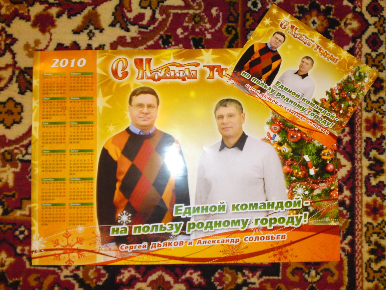 Тоже доставили календарик. Видимо поокружно изготавливают и разносят, у мну: Дьяков, Криктунов и Папков. Типа, зничит, не беспокойся избиратель, берхер за тебя всё решит: городской мэр, депутат округа, депутат ЗС. Не слишком ли размечтались?