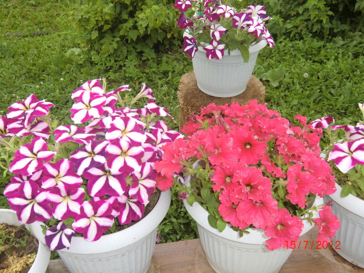 NeTa Опубликовано 4 мая, 2012 Автор Опубликовано 4 мая, 2012 Кое какие петунии начинают зацветать. Калибрахоа. Петуния рамблин синяя и бургунд. Причём бургунд, семена F2 - мой самозбор, полностью повторили материнское растение - и цвет и форма цветка, но получились супер компактные кустики, а не полу ампель, по крайней мере пока, посмотрим, что будет в конце сезона. А синий пахнет конфетами, и ещё чем то кондитерским. :aj: И наконец спер компактная кустовушка - серия Лимбо. Офигенный цвет цветка! Красивее, чем у рамблина.