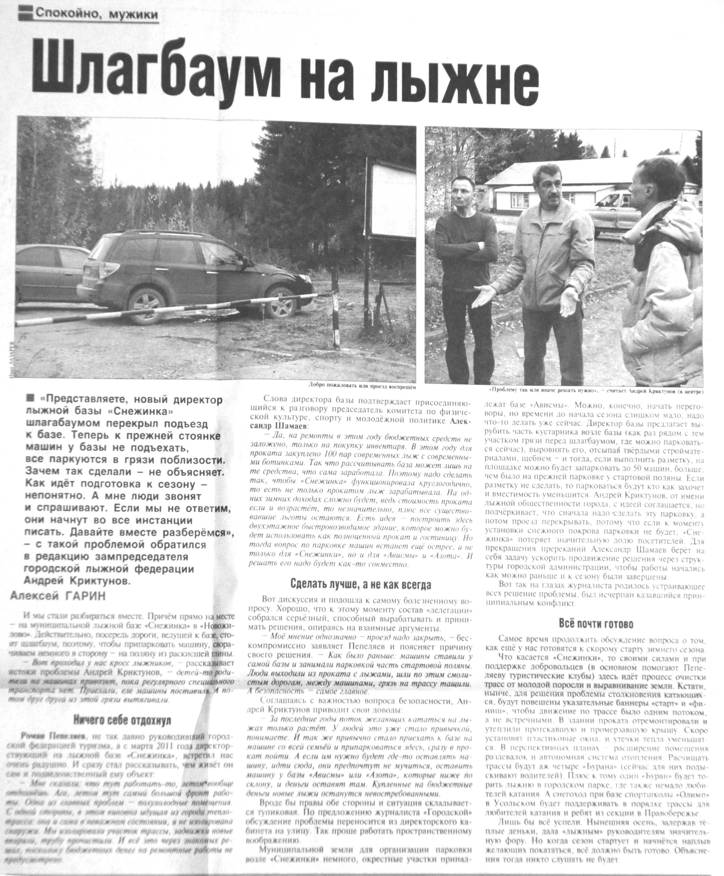 avz2 Опубликовано 17 октября, 2011 Опубликовано 17 октября, 2011 Великолепная статья сегодня про то, как Пепеляев (наплевав на всякие детско-антисоциальные программы Президента, губернатора, мэра, "рывки из зазеркалья" различные и т.п.) перекрыл доступ горожанам к городской лыжной базе. Великолепная позиция газеты: ну что ж, раз он так решил, значит, так и лучше, и безопаснее, что уж обсуждать. А туристы (что, больше-то некому?) кусты вырвут, туда, на косогор, зимой, по скользкому снегу пущай и заезжают. Или на соликамской срезке машины кидают. Во как о нас позаботились снова. Сто лет не писал в газеты, провести что ли эксперимент и попробовать выразить мнение читателя?..
