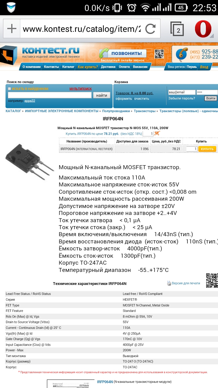 Zidane Опубликовано 25 сентября, 2014 Опубликовано 25 сентября, 2014 Народ выручайте, ежели кто в Пермь поедет в ближайшие выходные (если автобусом, даже лучше, потому что по-пути). Короче,сдох транзистор, и из-за этого печка дует только на 1,4 скорости. Транзистор как на картинке, IRFP064N. Стоит в пределах 150-200р. Непременно должен иметься в наличии в магазине Элеком, что расположен в "товарах Прикамья" по улице Попова,25.(недалеко от автовокзала). Буду очень признателен.
