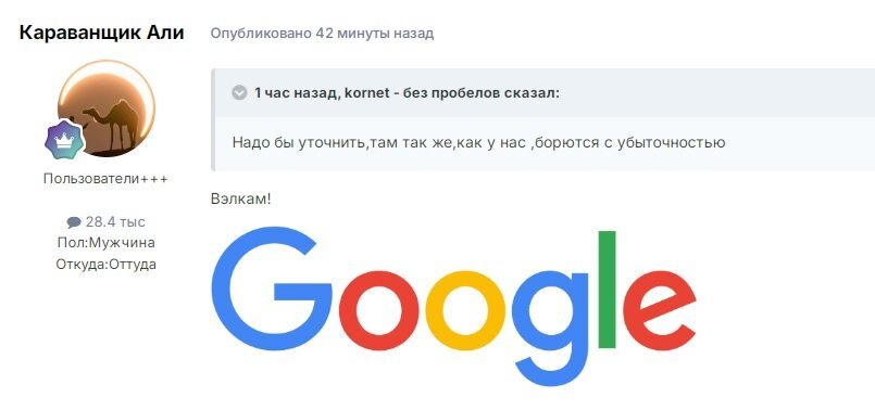 Гость kornet - без пробелов Опубликовано 23 апреля Опубликовано 23 апреля 11 минут назад, Караванщик Али сказал: не виноват, Нет,конечно.Просто ссылочка коцаная.Чё нервничать.А зарплаты директора нашей почты и Генерального почтмейстера шша я сравнил.И вздохнул.Хорошо живем.