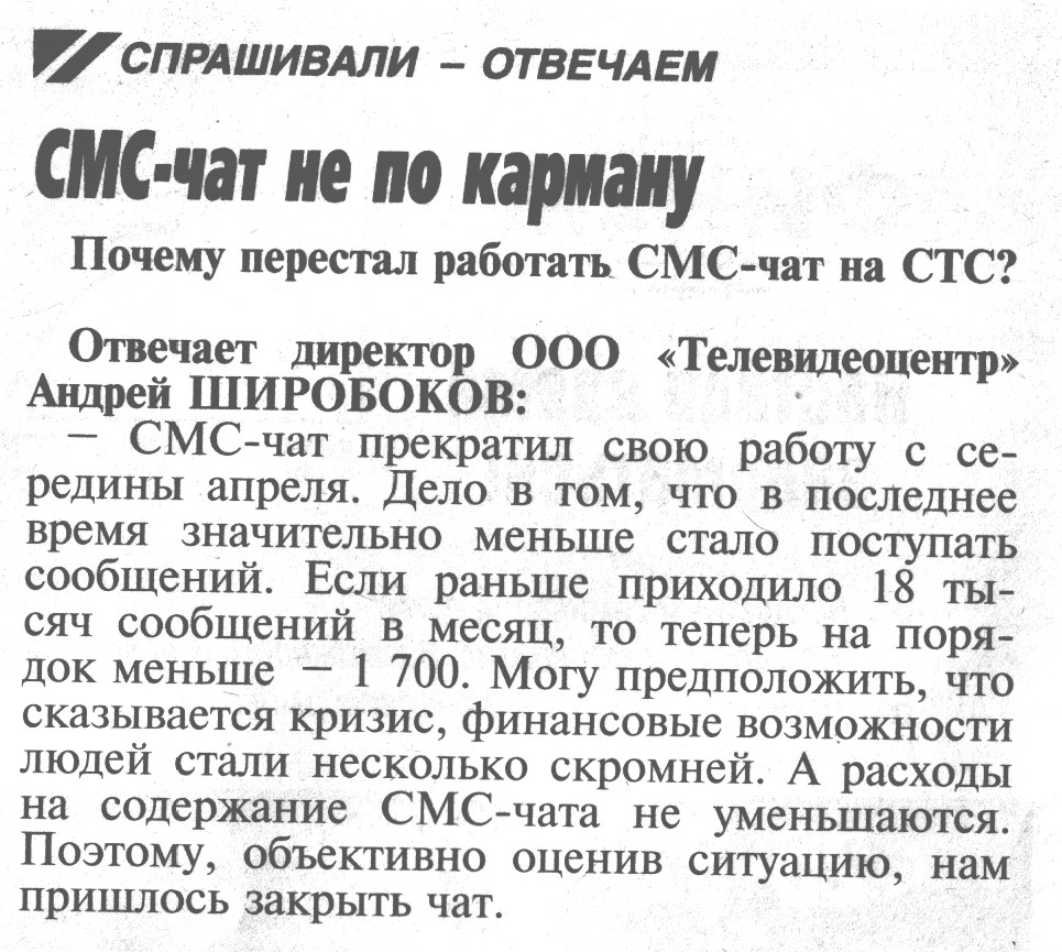 dinamitxp Опубликовано 10 ноября, 2008 Опубликовано 10 ноября, 2008 Широбоковы в конец обарзели: одна захватила 2 самые рейтинговые станции, другой- популярнейший канал СТС. Я понимаю чат ставить, когда идут мультики, но когда идут интересные фильмы, это уже выходит за рамки приличия. Вообще шанс очистить СТС от чата есть, и притом большой. Базарить здесь бессмысленно, необходимо действовать. Неделю назад Екатерине Неживец (в СТС-медиа курирует Березники) я отправил письмо с просьбой разобраться с чатом, т.к. я считаю, что он нарушает нормы госта, и обычно на развлекательных каналах, типа СТС или ТНТ его всегда показывают после полуночи. В письме она пообещала разобраться. Вы понимаете, что из-за одного человека бумаги не поднимут. Поэтому я ПРИЗЫВАЮ ВСЕХ ОТПРАВЛЯТЬ ЖАЛОБУ НА ДЕЙСТВИЕ БЕРЕЗНИКИ ТВ И ПРОСИТЬ ОСВОДИТЬ ТЕЛЕКАНАЛ СТС ОТ ЧАТА. Должны написать не один и не два человека, а МИНИМУМ ЧЕЛОВЕК 10, тогда пойдёт сдвиг в лучшую сторону. ЭТО ЕДИНСТВЕННЫЙ ВЫХОД! ИТАК, КОМУ СИЛЬНО ЗАДОЛБАЛ ЧАТ, СРОЧНО ПИШИТЕ НА МЫЛО И ОПИСЫВАЙТЕ ПРИТЕНЗИИ ПО ОТНОШЕНИЮ БЕРЕЗНИКИ ТВ. Может вас задолбал не только чат, а что нибудь ещё. ДАЮ МЫЛО: ENezhivets@ctc-tv.ru, В КРАЙНЕМ СЛУЧАЕ: DVetyugov@ctcmedia.ru ДАВАЙТЕ ВМЕСТЕ ОСВОБОДИМ СТС ОТ ЭТОЙ ХРЕНИ.