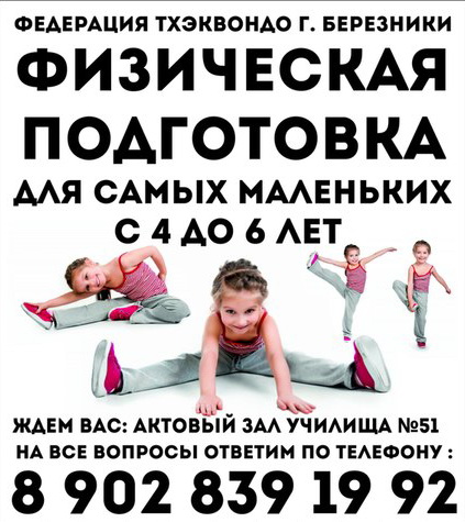 Bereznikiokna Опубликовано 22 мая, 2013 Опубликовано 22 мая, 2013 Федерация Тхэквондо г. Березники Открылась группа по САМООБОРОНЕ для девушек и женщин!!!! Дни занятий суббота, воскресенье!!! Федерация Тхэквондо г. Березники С 1 ИЮНЯ - тренировки проходят каждый день с 18:30. место: Спорт зал УВД или стадион школы № 1. Стоимость занятий летом - 750 рублей/месяц.