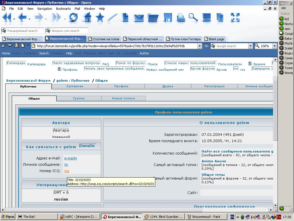 ChipTune Опубликовано 30 мая, 2005 Автор Опубликовано 30 мая, 2005 заходи сюды :razz: http://forum.berezniki.ru/viewtopic.php?t=931