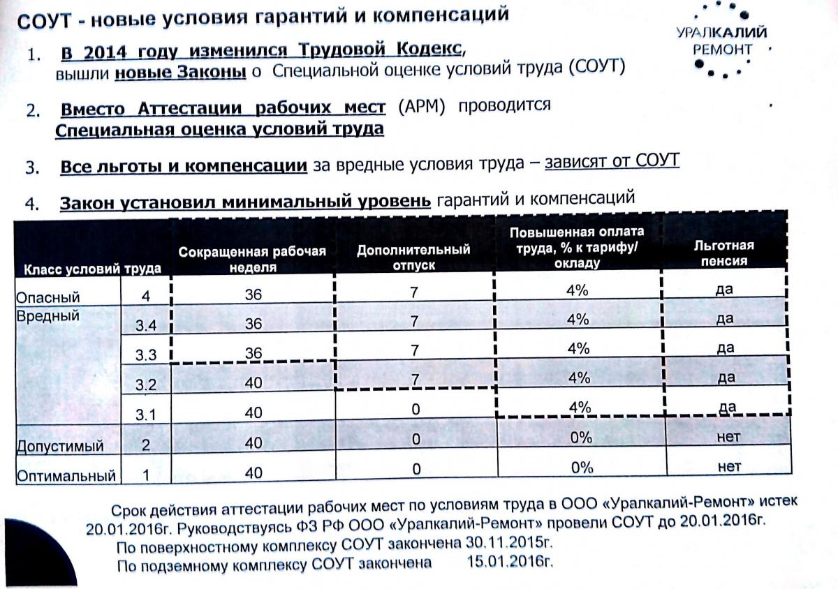 Makcим Опубликовано 8 мая, 2016 Опубликовано 8 мая, 2016 Во как вашего брата мочат! А откроешь вашу газетенку - завидно становиться, как думаю начальники о людях беспокоятся. в курсе, что это гос.программа? вот не знаю, за что вы панику разводите, но по крайней мере, у меня вообще ничего не изменилось, в забое бываю для проверки. Все льготы пока на месте. УК до 17 года тоже сделает СОУТ, так что не переживай)) А тем временем СОУТ добрался и до подземки "Уралкалия-Ремонта". Наиболее сильно пострадали низшие ИТР - электромеханики и энергетики. Теперь они работают по второму, допустимому, классу, без вредности. Не за горами надо полагать и сам "Уралкалий" Кто-то уже видел (подписывал) новые доп. соглашения с классом вредности "2"?