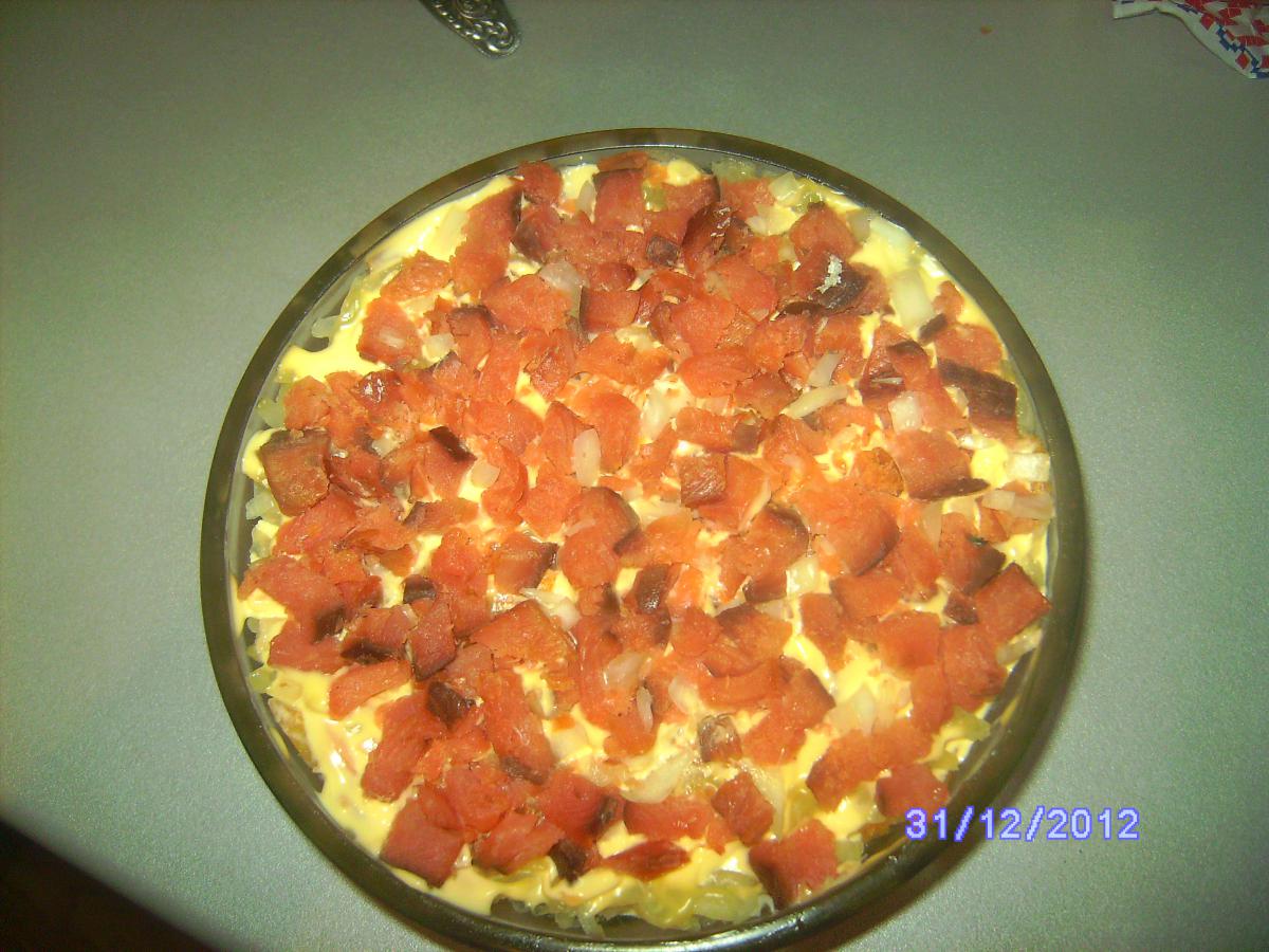 Ksanta Опубликовано 30 декабря, 2012 Опубликовано 30 декабря, 2012 Девочки, вопрос у меня. Даже два. Кто знает рецепт салата Нептун? Его еще в Вивате продавали, вроде слоеный, сверху кусочки красной рыбы. И еще как вкусненько замариновать лук. Как-то к шашлыкам подавали отдельно, и не кисло и не сладко, но такая вкуснятина. Подскажите кто знает О! салат Нептун, мой муж его просто обожает. Готовиться очень просто, выкладывается слоями, картофель тертый на крупной терке, горбуша копченая(кубиками), лук, майонез, морковь(тертая) немного, яйцо(тертое), майонез и так 2 слоя, с верху кубики горбуши. И дать настояться часа 4. Как я мариную лук: режу тонкими кольцами, добавляю холодную воду, и по тихоньку добавляю уксус, ставлю в холодильник на 30 мин. Если лук получился слишком ядерный, промываю холодной водой.