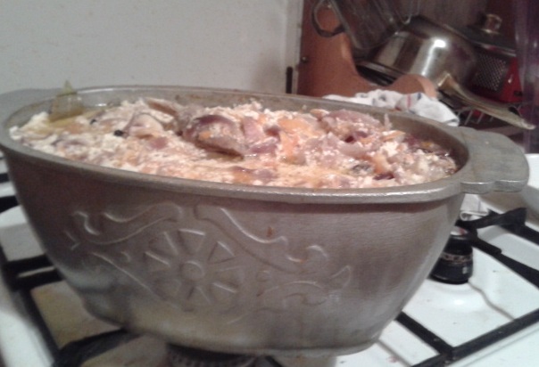 Bettersweet Опубликовано 6 июля, 2013 Опубликовано 6 июля, 2013 Справляли дочуркин первый День рождения) Салат мимоза Салат нежный.одно блюдо с оформлением а-ля "подсолнух" Салат Цезарь с курицей Салат Греческий с брынзой Тарталетки со сливочным сыром и семгой Торт домашний.немножко "отсебятины". Песочные коржи, крем-взбитые сливки, после первого коржа грецкий орех, после второго слой из финиковых персиков. Получилось очеееень вкусно, в разрезе фото нет (срубали сразу) На горячее: кролик тушенный с овощами в казане, и запеченный картофель. Фото уже после праздника, муж попросил добавки)угодила) Ну еще нет на фото нарезка мясная, нарезка рыбная, фрукты..В общем, гости уползли довольные))