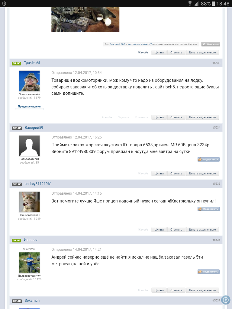 Иваныч Опубликовано 23 апреля, 2017 Опубликовано 23 апреля, 2017 Иваныч, а ты буквально страничку назад не видел, когда я заказ общаковский оформлял? Или тогда ты еще не думал об этом? АА знаю что на некоторые ямы шли троса в комплекте с мотором. Если не ошибаюсь в красной оболочке размер не знаю как 11 футов? У тя кокпит меньше крыма чтоли? Одним словом Иваныч... . Специально дела общаковский заказ чтоб хоть доставку поделить. Но у тя видать финансов несчесть. Не видел видимо про заказ,а то тоже бы заказал,а то ишь сразу бабла море,повторю,не заметил этот пост про заказ, теперь поздно,тут ТК возьмёт в районе 580-600 руб,ничё не поделаешь,кстати это всё равно дешевле чем у нас брать,у нас С2 6мм стоит почти 2т.р, там я заказал по 1670 за шт.