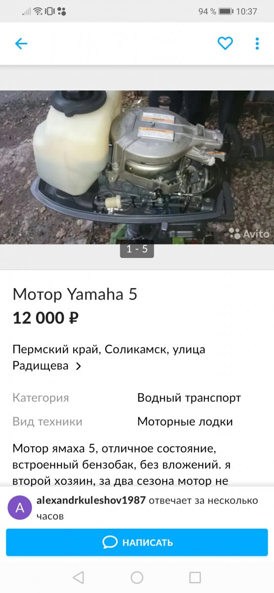 Алксандр Опубликовано 24 августа, 2019 Опубликовано 24 августа, 2019 7 минут назад, соло сказал(а) : Чёт не нашёл там такой, 5 за 12 я бы и сам прникупил.)) Можно ссылку. Посмотреть хоть. https://www.avito.ru/solikamsk/vodnyy_transport/motor_yamaha_5_1763950441?utm_campaign=native&utm_medium=item_page_android&utm_source=soc_sharing