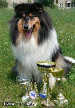 shunya Опубликовано 4 января, 2009 Автор Опубликовано 4 января, 2009 Ну, что ж продолжу свой рассказ. В 2002 г. у меня умерла Лира. Через несколько месяцев я стала искать себе собаку, но не просто колли, а такую чтоб она могла побеждать на выставках. Куда я только ни звонила и не писала: Киев, Красноярск, Москва, Самара, Глазов, но как на зло ни где не было щенка отвечающего моим требованиям. В поисках я находилась 2-а года. А весной 2004 г. одну из собак нашей секции возили на вязку в г. Тулу. Хозяева взяли меня с собой на машине. Я сама смогла увидеть вживую папашку будущих щенков (ну а маму я и так знала, т.к. сама ее привезла к нам щенком из Москвы и потом часто ее видела) и он меня ОЧЕНЬ впечатлил! Стала ждать деток от этой пары. И вы представляете мое разочарование, когда Лаки родила 5-ь кобелей и всего одну девочку!!! А ведь, чтобы быть хозяином выставочной собаки надо выбрать лучшего щенка в помете. А что тут было выбирать, если девица всего одна??????????????? Я наблюдала за ростом этих щенков, долго колебалась брать ли мне эту девочку, в итоге все же взяла. Заводчица всем детям дала клички на французском языке. Моя стала обладательницей вот такого имечка - Бэль дэ Нюи Нуар дэ Пари. Что в переводе означает - Красавица черной ночи Парижа. А дома ее стали звать Шика. Это слово сокращенное от слова шикарная. Росла она довольно нескладной и очень смешной, я уж думала, что ошиблась в выборе. Но все же моя Шика с возрастом оформилась и превратилась в настоящего лебедя. В каких только городах мы с ней не были на выставках. Не скажу, что всегда оставались победителями, но и проигрывали не так уж часто. Самая важная для меня победа была в Москве в марте 2007 года. Когда Шика среди почти 50-и дам стала Лучшей по своему полу!!! Моей радости не было предела! За ее выставочную карьеру мы с ней получили несколько Чемпионских титулов. Сейчас Шикуша ждет щеночков. Когда восстановится после родов вновь будем участвовать в выставках. В июле 2007 года у Шикуши родились ее первые детки. Папой щенков стал рыжий красавец из г. Перми - Хоксвуд Дип ин Май Дрим, а дома просто "Бус". Всего у нас было 5-ь щеночков: 4-е лапочки-дочки и один сыночек. Т.к. горожане наши, видимо, колли любят не очень сильно, то в город был куплен всего один щенок наш единственный сынок - Живанши Мсье де ль*Эффект "Жан". Три девушки разъехались по разным городам: Краснокамск (Перм край), Новоуральск (Сверд обл) и в Челябинск. А вот лучшая девица из помета осталась жить у меня. На нее были покупатели в др. города, но мне стало очень жалко отдать куда-то лучшего щенка в помете. Т.к. звонков по нашим объявлениям в городе не было, то я решила, что эта дама будет жить у меня. Назвала я ее Женевьев Мэрвей дю Нор, а дома просто Женя. И вот с июля 2007 почти по сентябрь 2008 г. дома у меня жили аж три колли и всех трех окрасов: мраморная Шунечка, черная Шика и рыжая Женя :) Пока Шика отращивала себе новую шубу после родов (колли после щенков очень сильно линяют - до гладкошерстного состояния) по выставкам со мной стала ездить Женя. Девушка тоже оказалась не промах, идет по стопам своей мамы и даже кое в чем ее уже превзошла - по титулам и победам. Представляю вам фото Шики (черная) и Жени. На этом рассказ о моих собаках закончен.