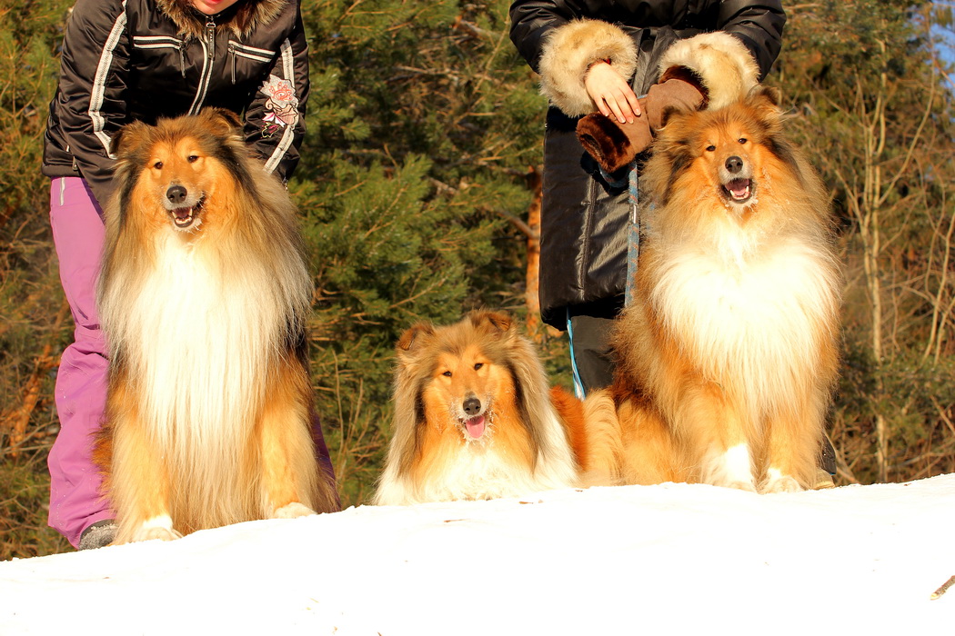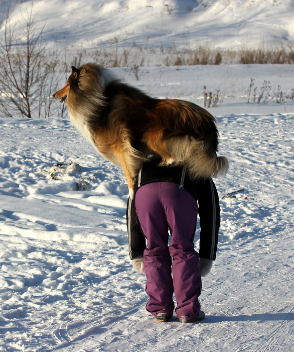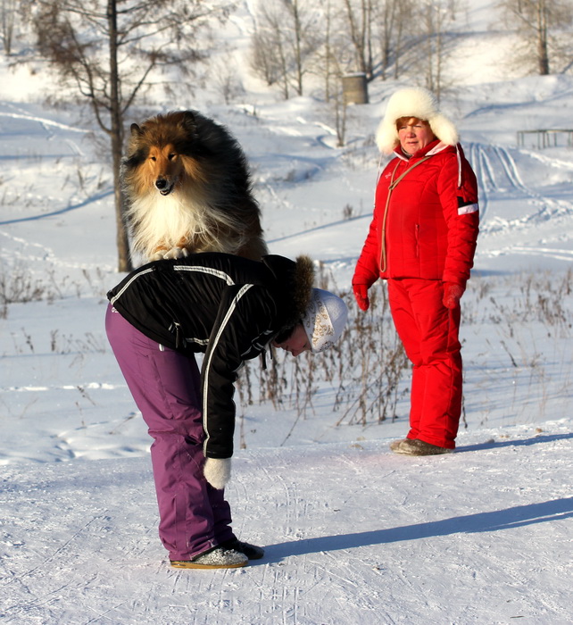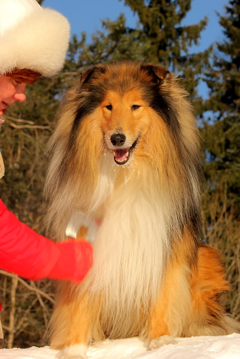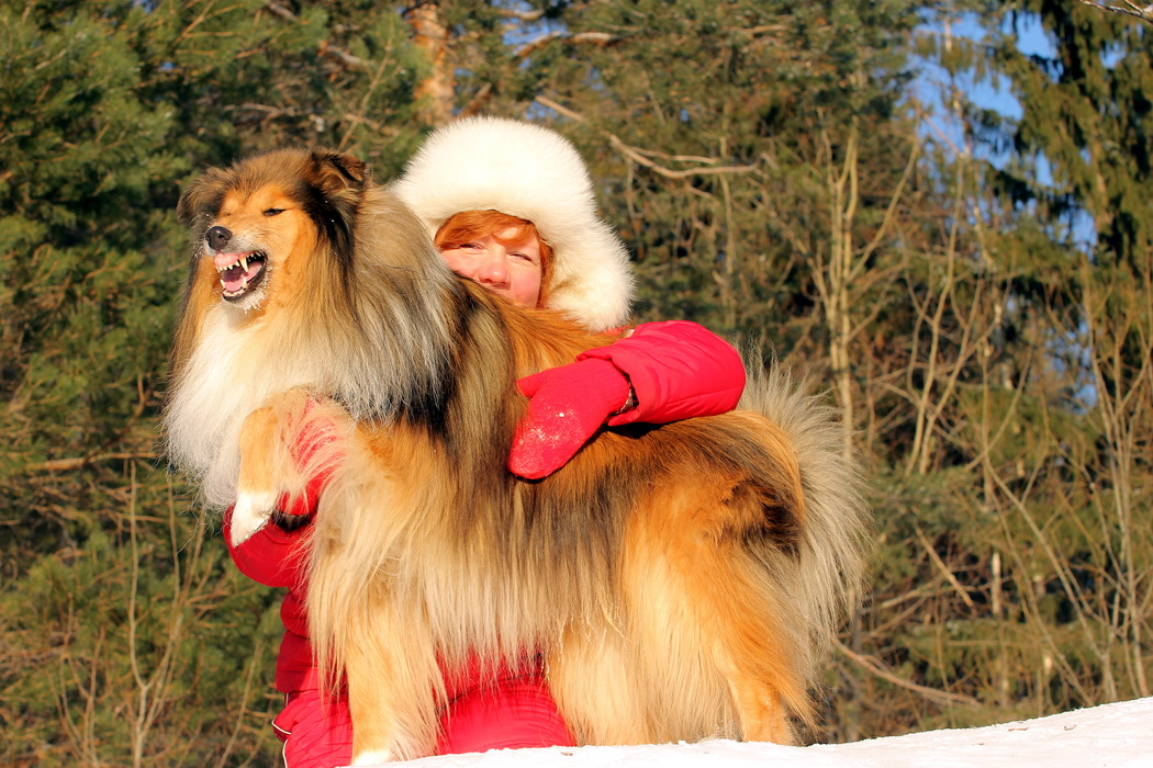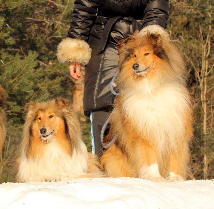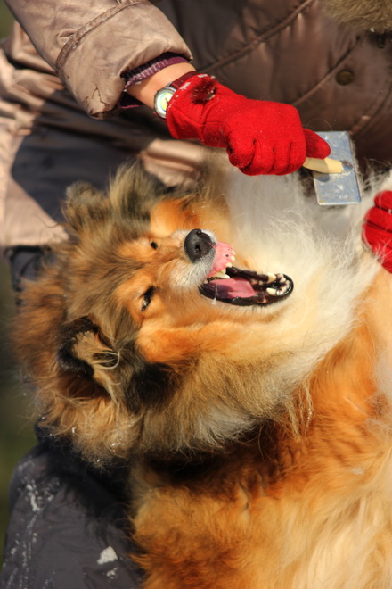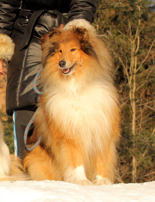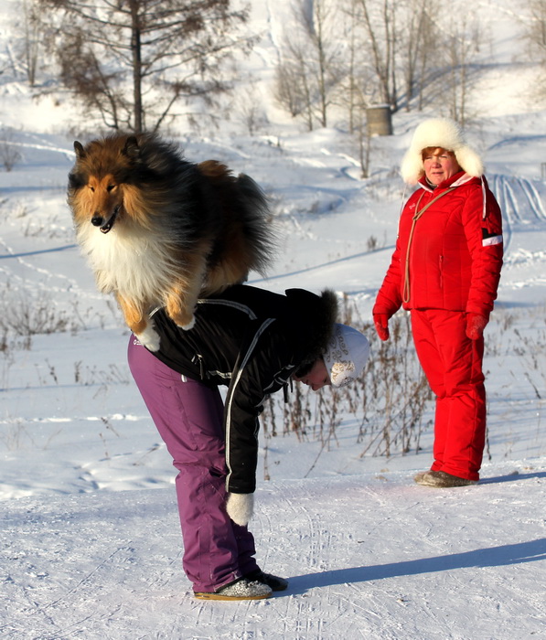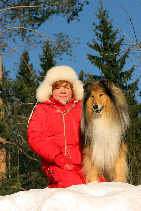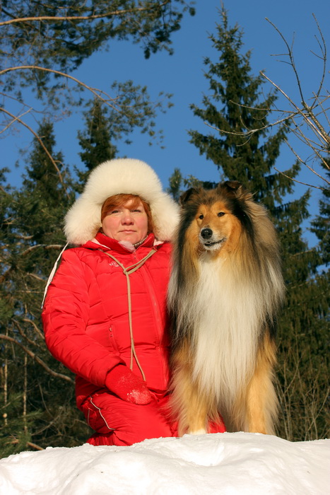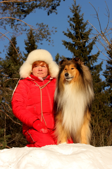 Садкова Наталия Опубликовано 4 февраля, 2012 Опубликовано 4 февраля, 2012 Наташка,ты мне на дочу не наговаривай. Это она не расческу не любит, а говорит, смотрите какие у меня здоровские зубки, гляньте какие они беленькие! :vinovat: И разве может, такая очаровательная рыжая колли, скалить зубки? Ну вы сами то гляньте на ее милейшую мордочку! Вот так кокетливо вертеть головой, может только Джина! Я не припомню других собак с такой богатой мимикой.:dada: Светлана, поцелуйте Джину в носик от меня. И спасибо Вам за заботу, теперь детки у меня будут с теплыми носочками и варежками. Фотки класснючие, спасибо за позитив! Пару строчек, о том, как мы поехали на выставку.....(про Дэсс) Утром перед поездкой на выставку насмешила нас с мужем до коликов в животе. Я ее с утра выпустила во двор погулять перед длительной поездкой, естественно Дива тоже пошла погулять. Дивуся на правах старшей и очень опытной подруги, поглядела на Дэсс и решила, что к выставке я ее не достаточно хорошо подготовила и шерсть не доведена до нужной кондиции. Дива не теряя драгоценных минут, зная что сейчас мы будем выезжать, взяла инициативу в свои зубы. Буквально за несколько минут она навела, на ее взгляд, очень достойную прическу для выставки, афигенский ирокез на голове ,добротно украшенный обильными слюнями. :lol: Так как на улице был морозец -30, то причесон на голове Дэсс выглядел, более чем убедительно. Я аж ахнула от такой красоты. Расстраивать Диву не стала, сказала что я в полнейшем восторге от ее творения и Дэсс с такой прической успех на выставке-гарантирован! Но это еще не все, когда мы пошли к машине и Дэсс обнаружила, что Дивы с Шером с нами нет, то она рванула обратно домой. На мои подзывы даже и не думала подходить ко мне (она почему то не любит машину, хотя ее не укачивает там). Было жутко холодно и долго уговаривать мне ее совсем не хотелось, пришлось идти за ней. Завидев меня, это чудище рухнуло кверху лапами в сугроб и притворилась пристреленной насмерть. :lol: Пришлось ее реанимировать кусочком сыра. Почувствовав под носом ароматный запах, глаза у Дэсс открылись, хвост показал признаки жизни в виде легких помахиваний. На все мои подхалимские уговоры встать и идти, она упорно не желала реагировать. В итоге, сама она идти так и не захотела, пришлось взвалить эту тушку себе на руки ,донести до машины и погрузить ее туда. Дорогу ребенок перенес отлично туда и обратно.