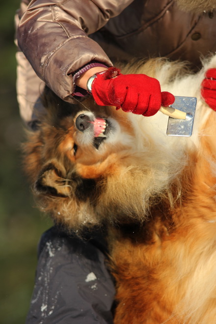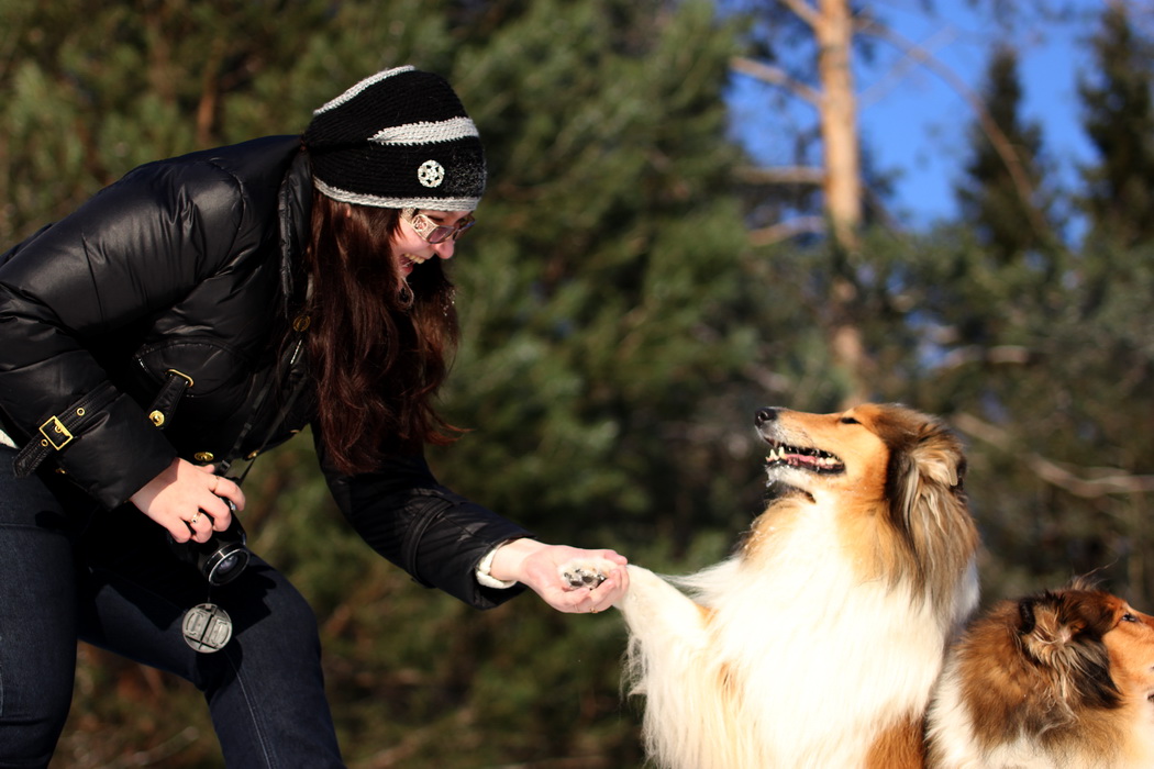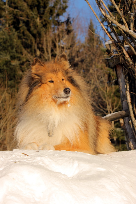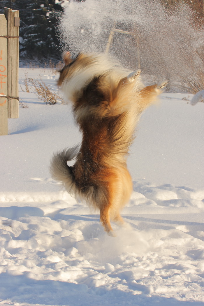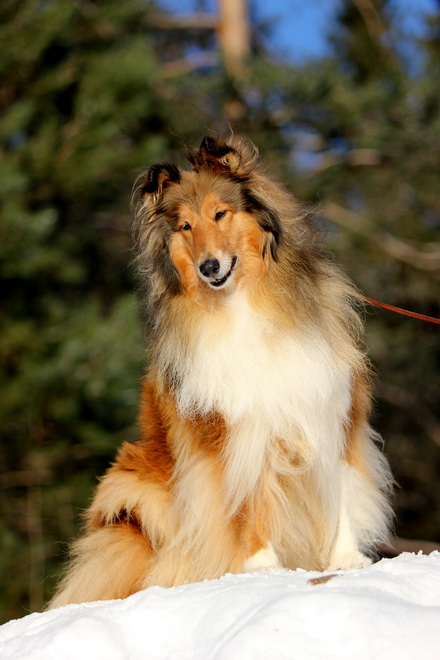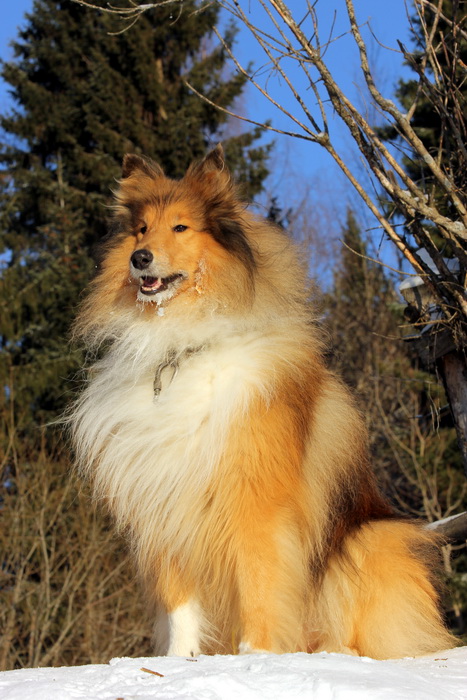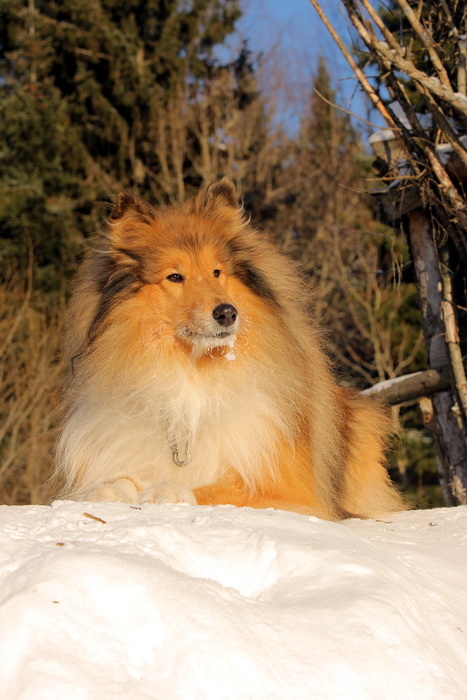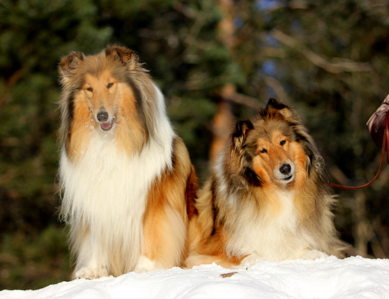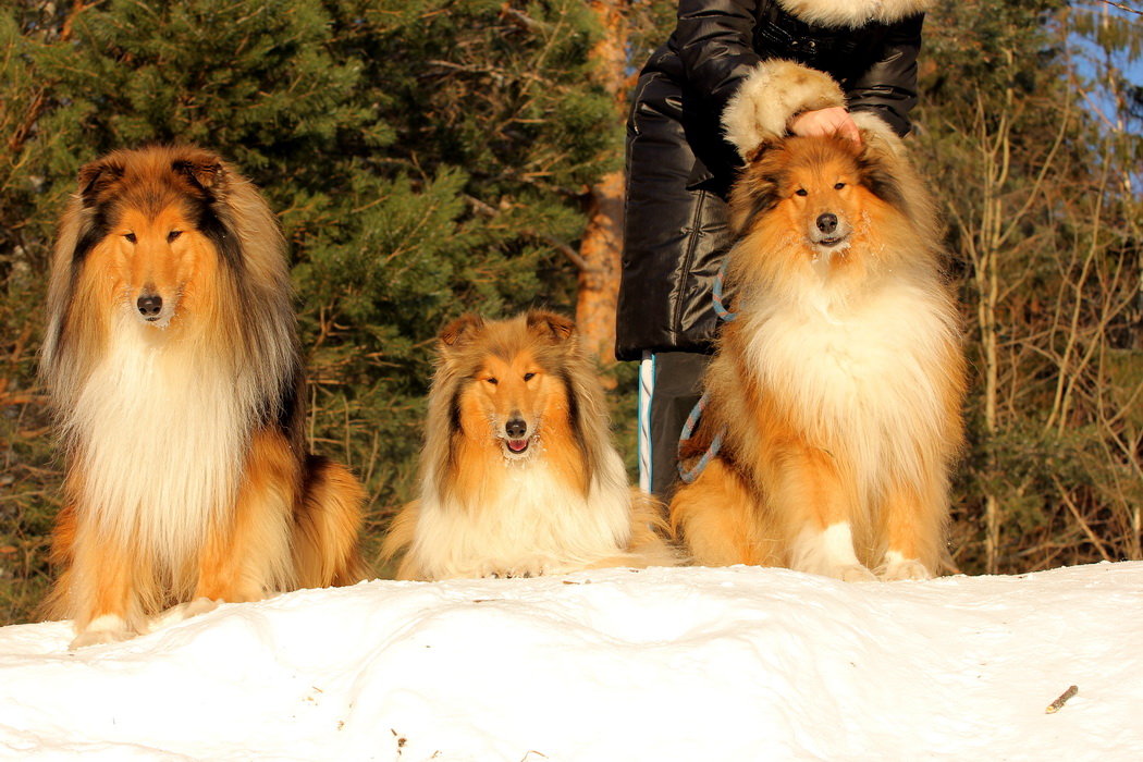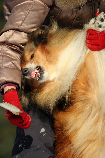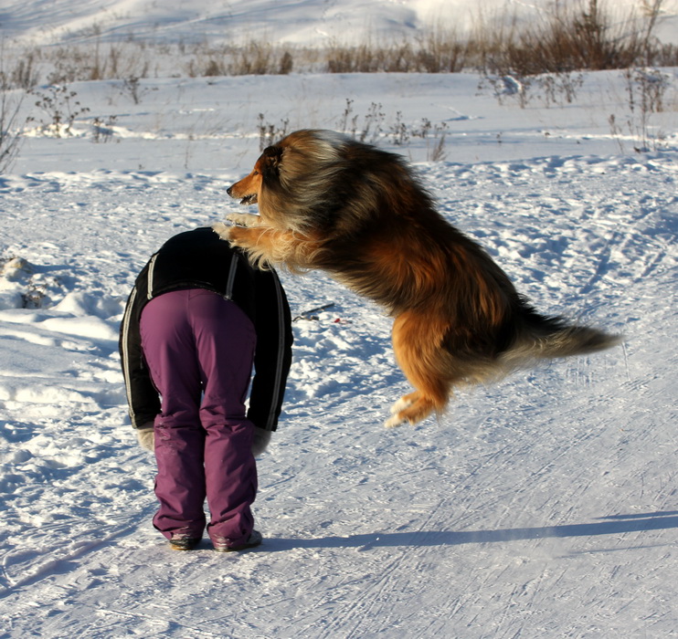 Садкова Наталия Опубликовано 4 февраля, 2012 Опубликовано 4 февраля, 2012 Наташка,ты мне на дочу не наговаривай. Это она не расческу не любит, а говорит, смотрите какие у меня здоровские зубки, гляньте какие они беленькие! :vinovat: И разве может, такая очаровательная рыжая колли, скалить зубки? Ну вы сами то гляньте на ее милейшую мордочку! Вот так кокетливо вертеть головой, может только Джина! Я не припомню других собак с такой богатой мимикой.:dada: Светлана, поцелуйте Джину в носик от меня. И спасибо Вам за заботу, теперь детки у меня будут с теплыми носочками и варежками. Фотки класснючие, спасибо за позитив! Пару строчек, о том, как мы поехали на выставку.....(про Дэсс) Утром перед поездкой на выставку насмешила нас с мужем до коликов в животе. Я ее с утра выпустила во двор погулять перед длительной поездкой, естественно Дива тоже пошла погулять. Дивуся на правах старшей и очень опытной подруги, поглядела на Дэсс и решила, что к выставке я ее не достаточно хорошо подготовила и шерсть не доведена до нужной кондиции. Дива не теряя драгоценных минут, зная что сейчас мы будем выезжать, взяла инициативу в свои зубы. Буквально за несколько минут она навела, на ее взгляд, очень достойную прическу для выставки, афигенский ирокез на голове ,добротно украшенный обильными слюнями. :lol: Так как на улице был морозец -30, то причесон на голове Дэсс выглядел, более чем убедительно. Я аж ахнула от такой красоты. Расстраивать Диву не стала, сказала что я в полнейшем восторге от ее творения и Дэсс с такой прической успех на выставке-гарантирован! Но это еще не все, когда мы пошли к машине и Дэсс обнаружила, что Дивы с Шером с нами нет, то она рванула обратно домой. На мои подзывы даже и не думала подходить ко мне (она почему то не любит машину, хотя ее не укачивает там). Было жутко холодно и долго уговаривать мне ее совсем не хотелось, пришлось идти за ней. Завидев меня, это чудище рухнуло кверху лапами в сугроб и притворилась пристреленной насмерть. :lol: Пришлось ее реанимировать кусочком сыра. Почувствовав под носом ароматный запах, глаза у Дэсс открылись, хвост показал признаки жизни в виде легких помахиваний. На все мои подхалимские уговоры встать и идти, она упорно не желала реагировать. В итоге, сама она идти так и не захотела, пришлось взвалить эту тушку себе на руки ,донести до машины и погрузить ее туда. Дорогу ребенок перенес отлично туда и обратно.