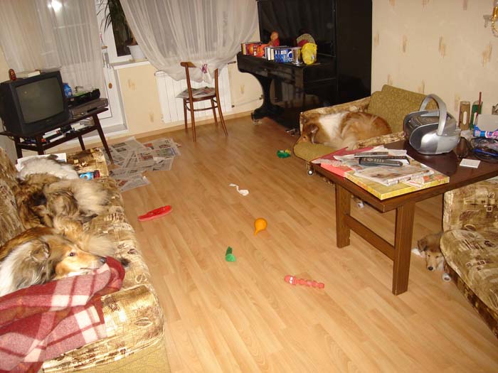 shunya Опубликовано 24 ноября, 2009 Автор Опубликовано 24 ноября, 2009 Наша Сандрюшка вечером в субботу впервые увидела фейерверк, стояла, смотрела не отрывая глаз - понравилось! Вот, кстати, как она относится к взрывам петард и феерверков - не боится? На фото любимая поза Сандрика для массажа - может так долго стоять и требавать: "Массируйте!" А что именно помассировать ей надо? Шика так же вставала на диван. Правда я там обычно после сна сидела на краю, Шика складывала на меня передние ножки и ждала когда ей почешут животик. А Женя, как только, я убрала голову с подушки - сразу же на нее укладывается. Как там дела с течкой? Потекла Сандра ли еще думает? Ну и снова загадка. Опять сколько колли на фоточке? Ну вот, радикал не работет. Вставляю фоту так