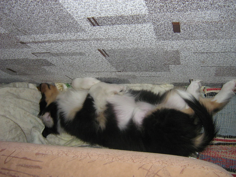 tatiana Опубликовано 30 октября, 2012 Опубликовано 30 октября, 2012 Татьяна мне выслала фото Сандры. Она тоже любит спать лапами вверх Вернее сказать, Сандрюшка так спала в глубоком детстве, сейчас же она предпочитает (правда не очень часто) спать со мной на кровати, причем не вдоль, а поперек, так что я иногда просыпаюсь придавленная к стенке, а Сандрюшка во всю длинну развалилась посередине кровати! :)) Теперь к ней присоединается и наш младший кот Рысик, и мне приходится выбираться из этого пушистого завала в огромными усилиями! Зато - как тепло спать с таким подогревом! :))