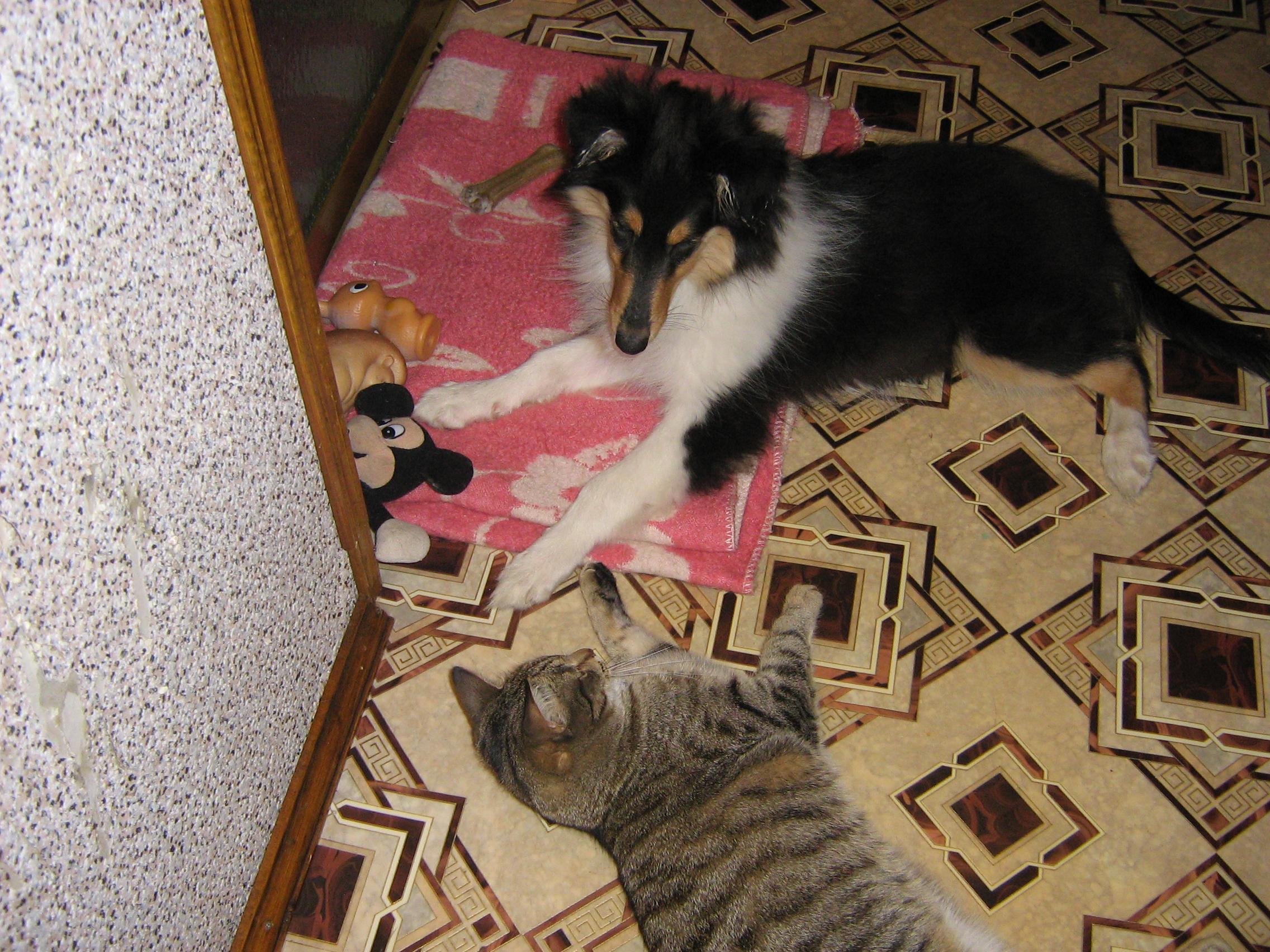 tatiana Опубликовано 13 мая, 2009 Опубликовано 13 мая, 2009 За поздравления спасибо! У меня Шика первый раз упиралась и не хотела на поводке ходить. Я сначала за ней ходила. А чуть попозже уже стала подтягивать ее тихонечко туда куда мне идти надо. Так и научились. Сандра помощницей растет. Будет охраной на огороде работать, чтоб никто ничего не украл :lol: Я тут все мучаю свою Женю. Хочется сделать ее красивых снимкой пока она окончательно не сбросила шубейку. Сначала пыталась отснять ее одна, а потом пришла помощь в лице Юли и Жана. Вот такая Женя у меня получилась: А это уже Жанчик: Всем привет! Как приятно любоваться нашими пушистыми питомцами! Очень мне нравится Зонарчик - такой красотулька! С Сандриком они очень похожи, но по фото сразу видно - настоящий мужчина :) Женя тоже прелесть (мы все еще скучаем по нашей рыжей Лесеньке) Сандринка вчера вечером "уломала" хозяина и опять отправилась с ним на огород - видимо дальняя прогулка очень понравилась. С утра хулиганят с Кешкой (видимо вечером сил бегать не было, решила компенсировать все бегатней утром, пока еще хозяева не совсем проснулись!) Фото с любимым хозяином
