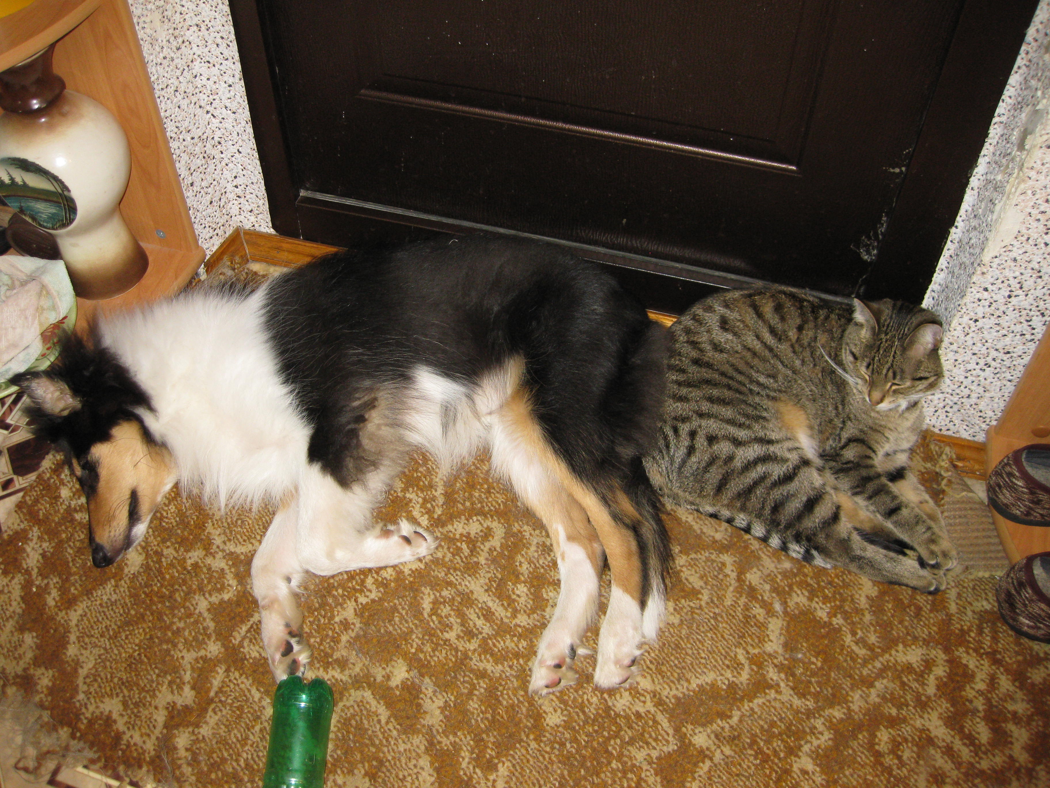 tatiana Опубликовано 17 июня, 2009 Опубликовано 17 июня, 2009 Всем привет! Наташа! Сандрюшка с бутылкой играла, и в итоге на себя намотала веревочку и получился "Маленький ослик-водовоз". Белое пятнышко есть, видно хорошо. Еще пара фото: "Ура! Хозяева ушли на работу!!!" и сладкая парочка с Кешкой "Ох, рано встает охрана!"