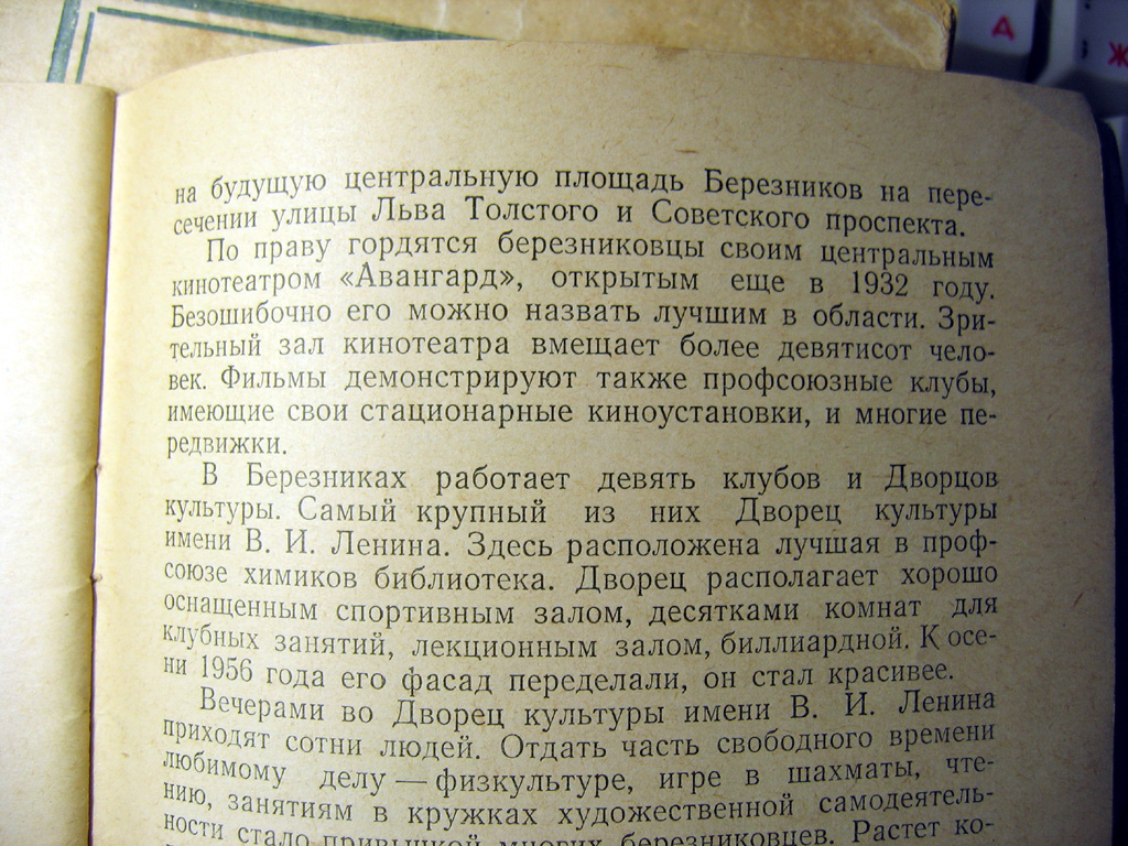 L-ektrik Опубликовано 27 января, 2009 Опубликовано 27 января, 2009 Вроде как дали уже высказаться другой стороне... 28-е уже сегодня января... Но что-то молчат... Э-э-эй! Эээээй! В культуре! Слышите, нет??? Спите, что ли? Муниципальная пенсия снится, да?? :) :) Во, блин! Икру новогоднюю ещё не прожевали видимо. Ну пусть ещё пожуют... :) :) А пока вот, такой скан: "Березники - город уральских химиков". Из книжки 1956 года. И другая страничка (продолжение): Много ли продвинули культуры-то в Бериках с 56-го?? Ой, животы надорвём! :) :) А может быть экскурсии платные вам устраивать на то место, где театр должен быть??? :) #-o :)